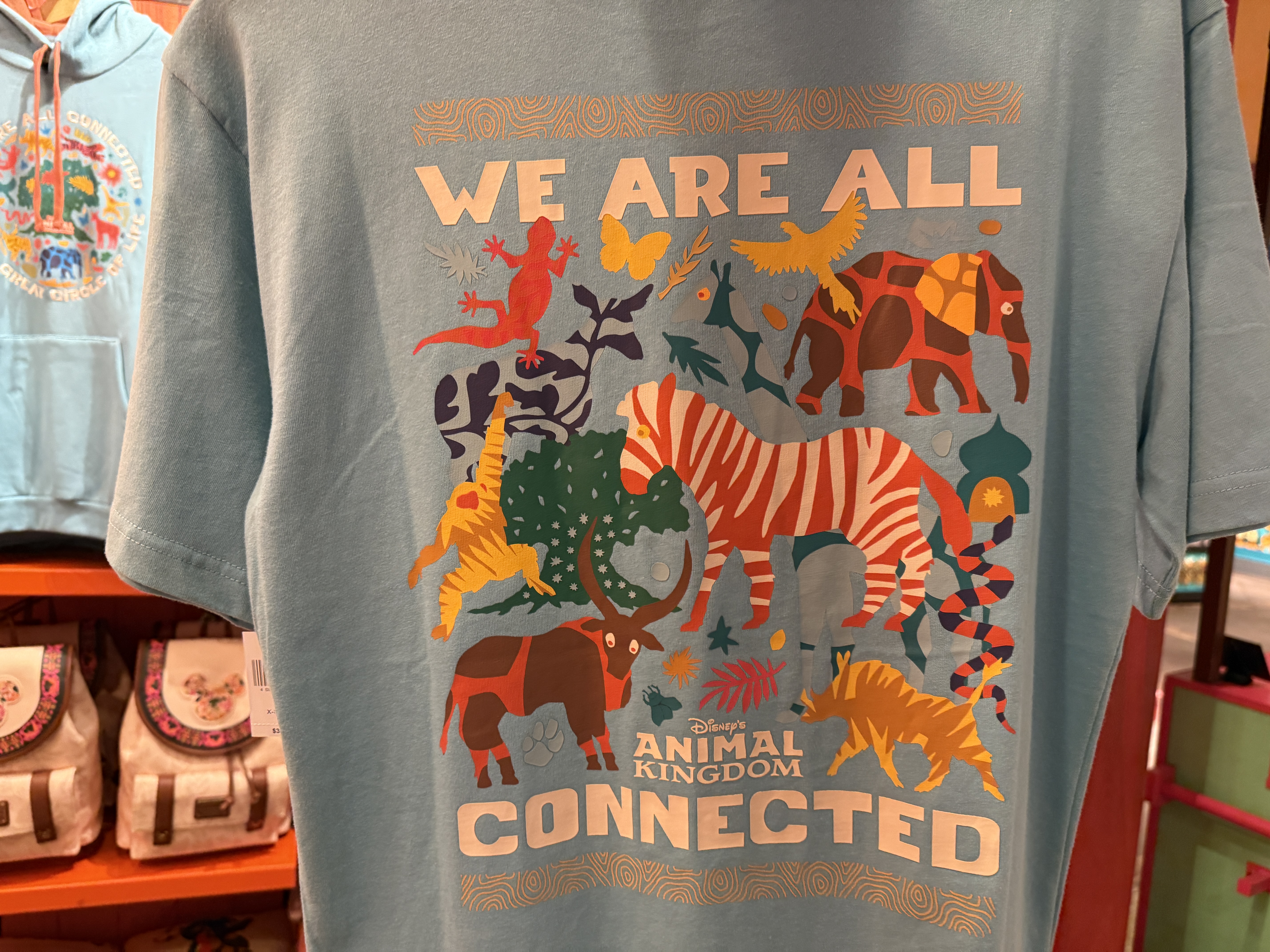 While the eyes of many visitors might be on the new merchandise for the Merry Menagerie, there is also an entirely new collection for Disney's Animal Kingdom in general. The message is celebrating the great "Circle of Life," without overtly being connected to The Lion King. You'll find variations of this new design on shirts, sweaters, a Loungefly backpack, mouse ears, and much more.