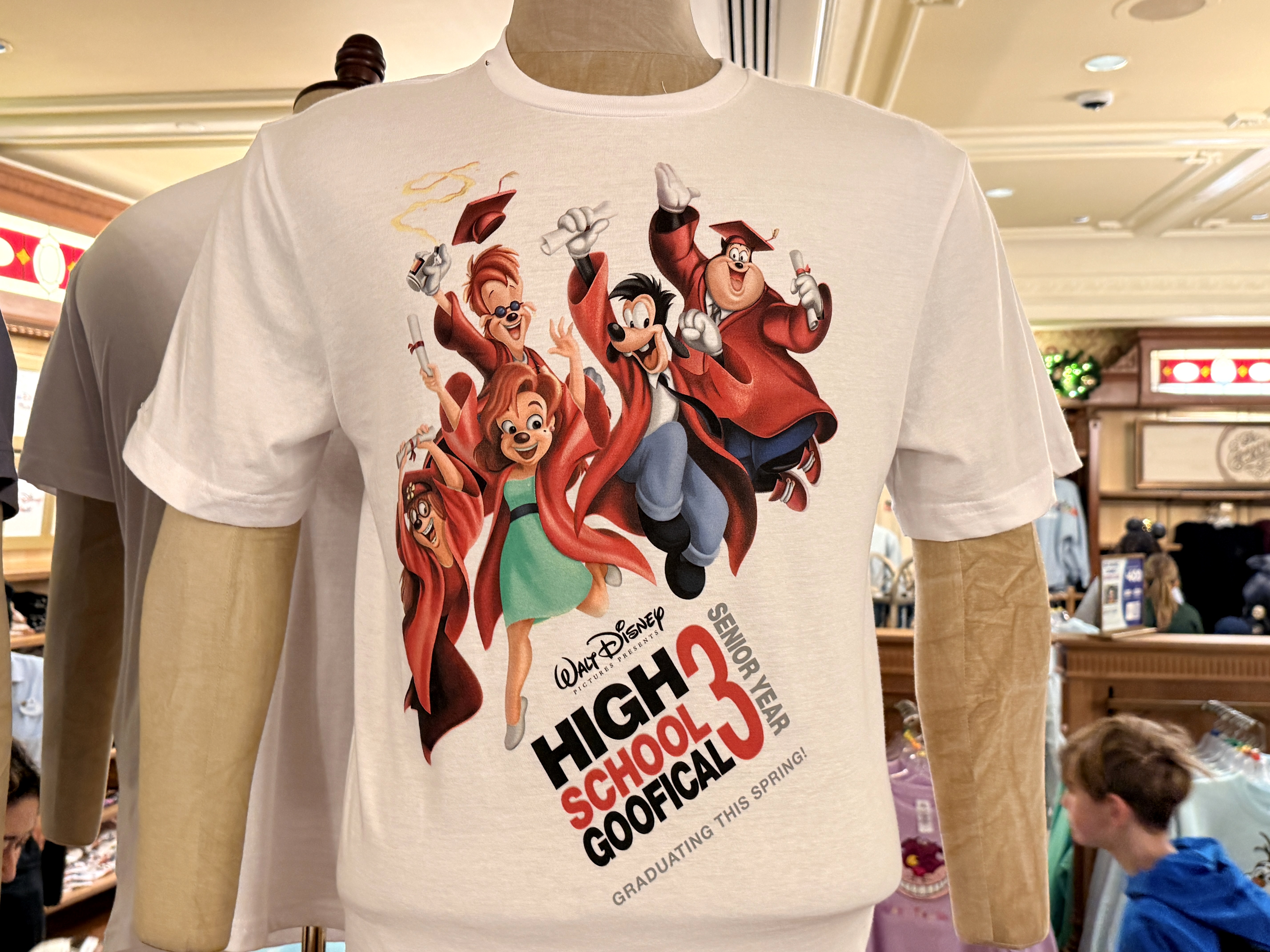 - One shirt translates a poster in the queue for the Disneyland version of Mickey & Minnie's Runaway Railway into T-Shirt form, which has the gang from A Goofy Movie taking on roles from High School Musical 3.