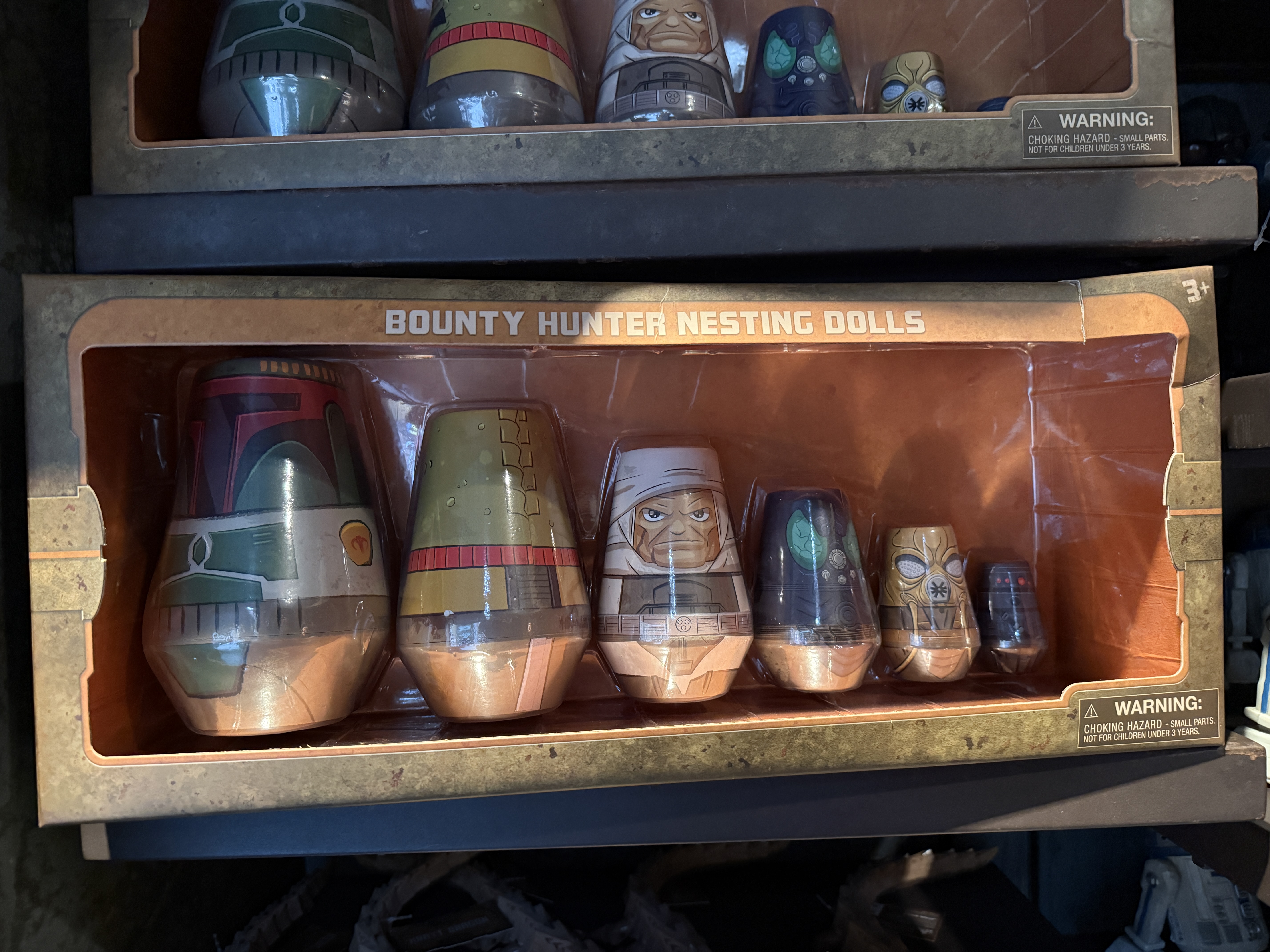 Next is this incredible set of nesting dolls featuring various Bounty Hunters such as Boba Fett, Bossk and IG-88. You can pick this set up for $34.99.