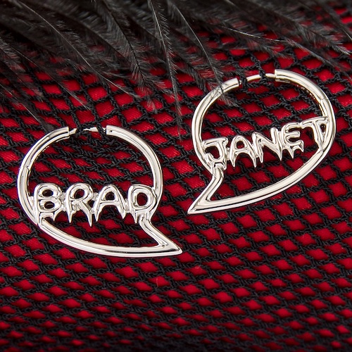 These hoop earrings feature the names of the film’s two lead characters, Brad and Janet, within word balloons - a fun way to acknowledge how many times they cry out each other’s names throughout the movie. Crafted in polished silver-plated brass.