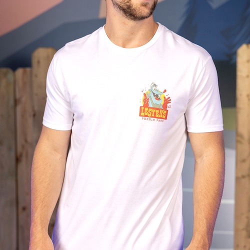 - “Lester’s Possum Park" - classic (unisex) styles/sizing (crewneck tee)