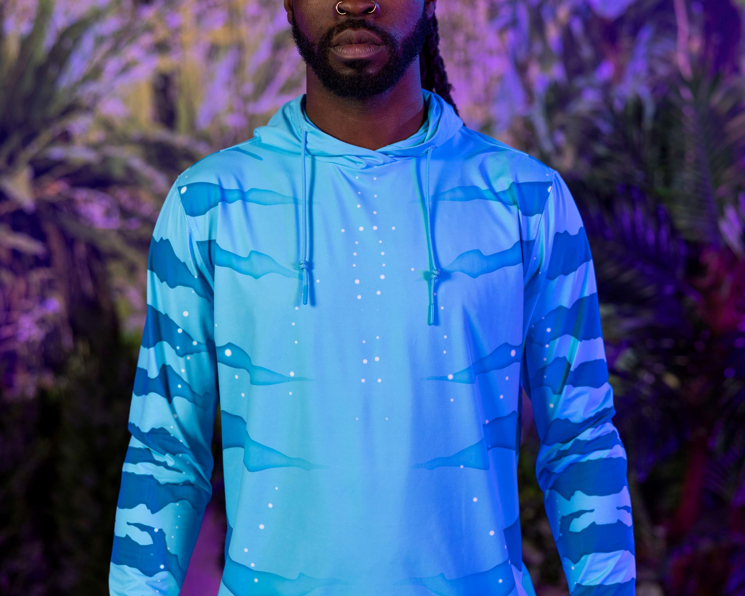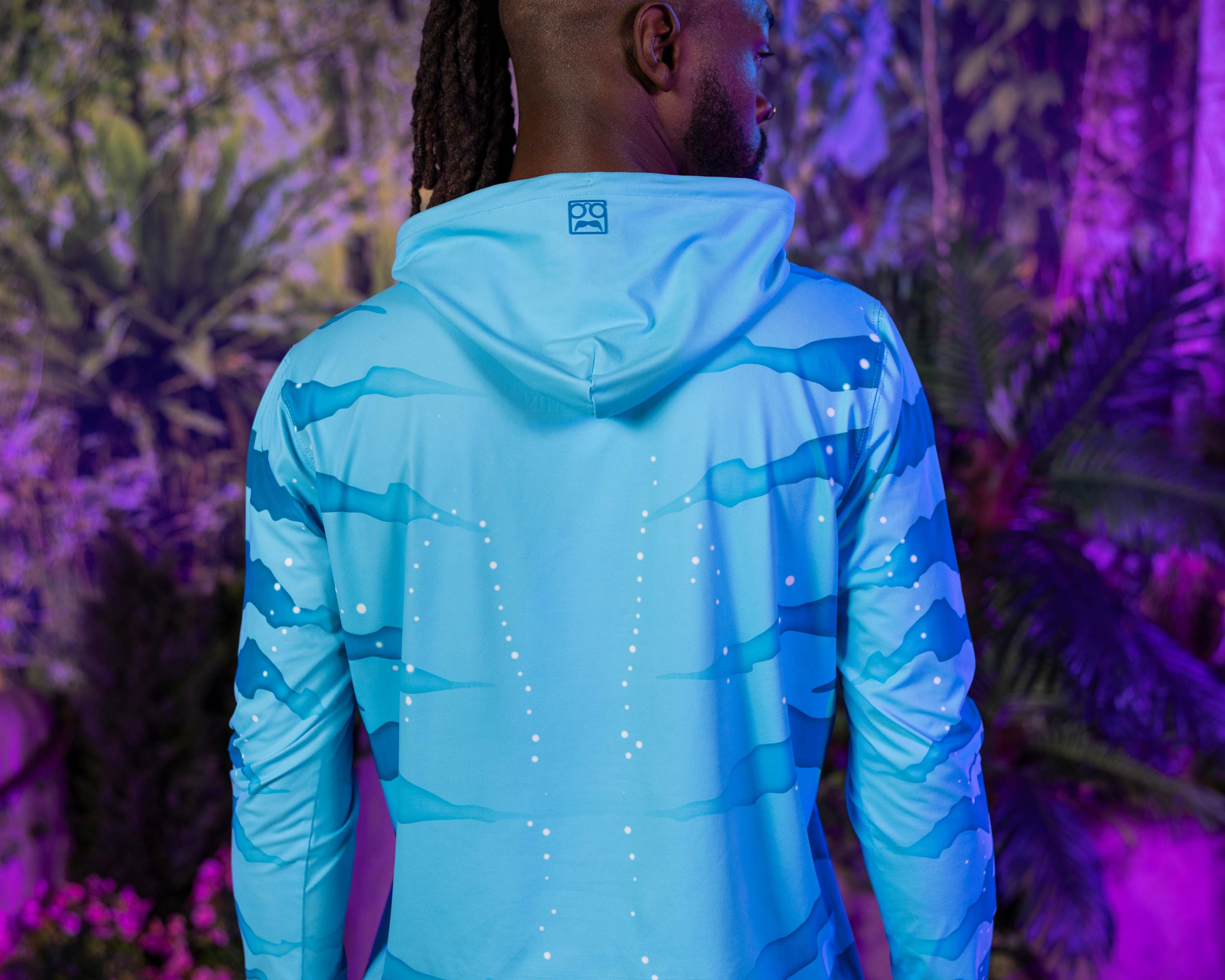 For those who really want to feel like a native to Pandora, "The Na'vi" hoodie is the perfect choice. The design features the iconic blue skin and markings of the tribe, accented with small white dots so you can transform your torso into that of a Na'vi!