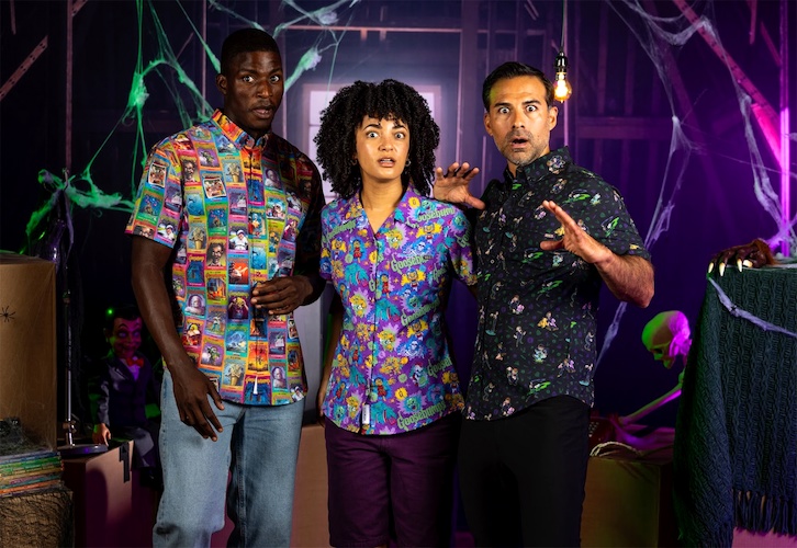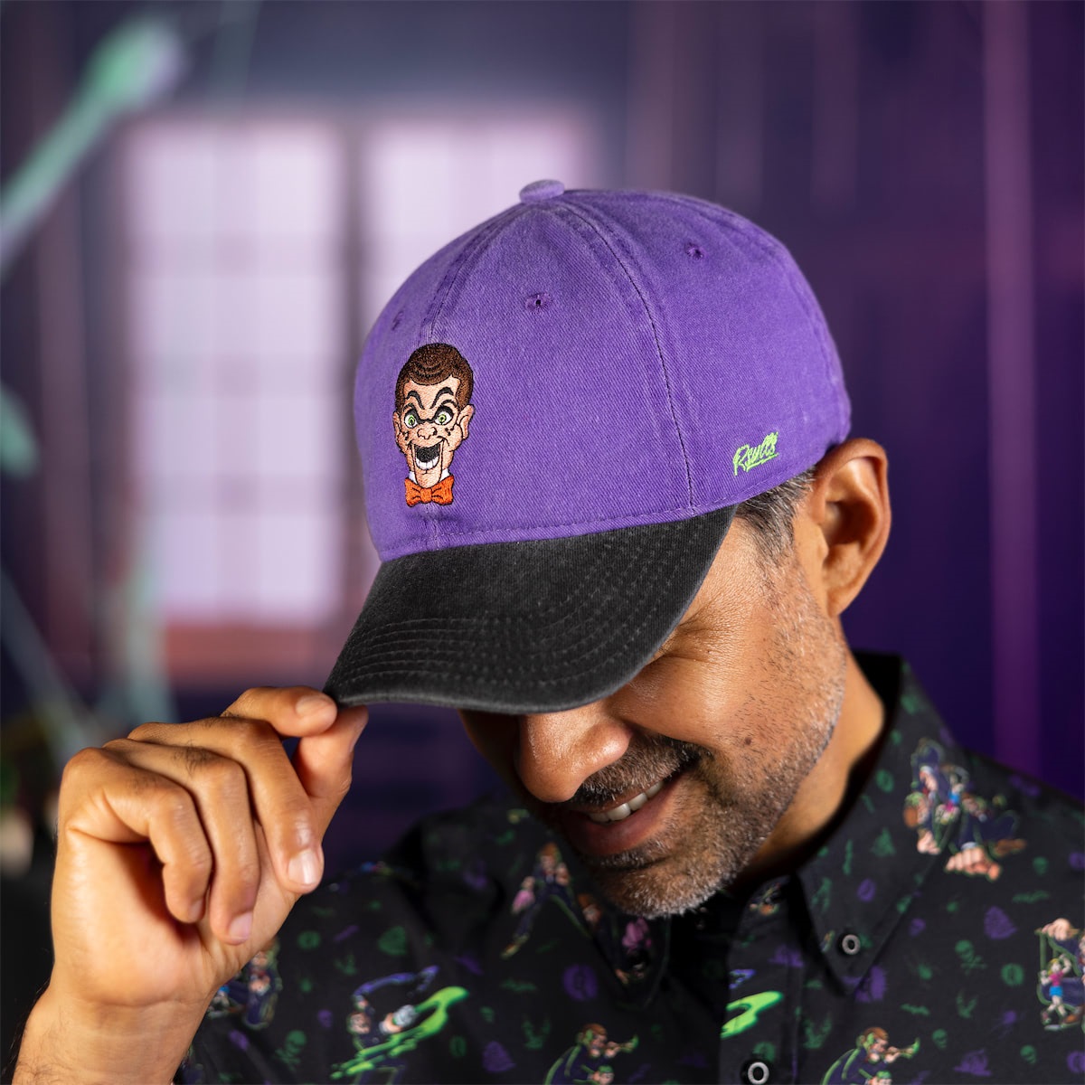 “Welcome to Horrorland" presents a carnival gone wrong with Goosebumps monsters manning the ticket booth, riding a roller coaster, showing off height requirements and more all set against a neon green background. Then there’s “Slap Happy Hijinks" where everyone’s favorite dummy gets into a mess of trouble you wouldn’t wish on your worst enemy…or maybe you would. Slappy is surrounded by green and purple skull and bat icons and the Goosebumps “G."