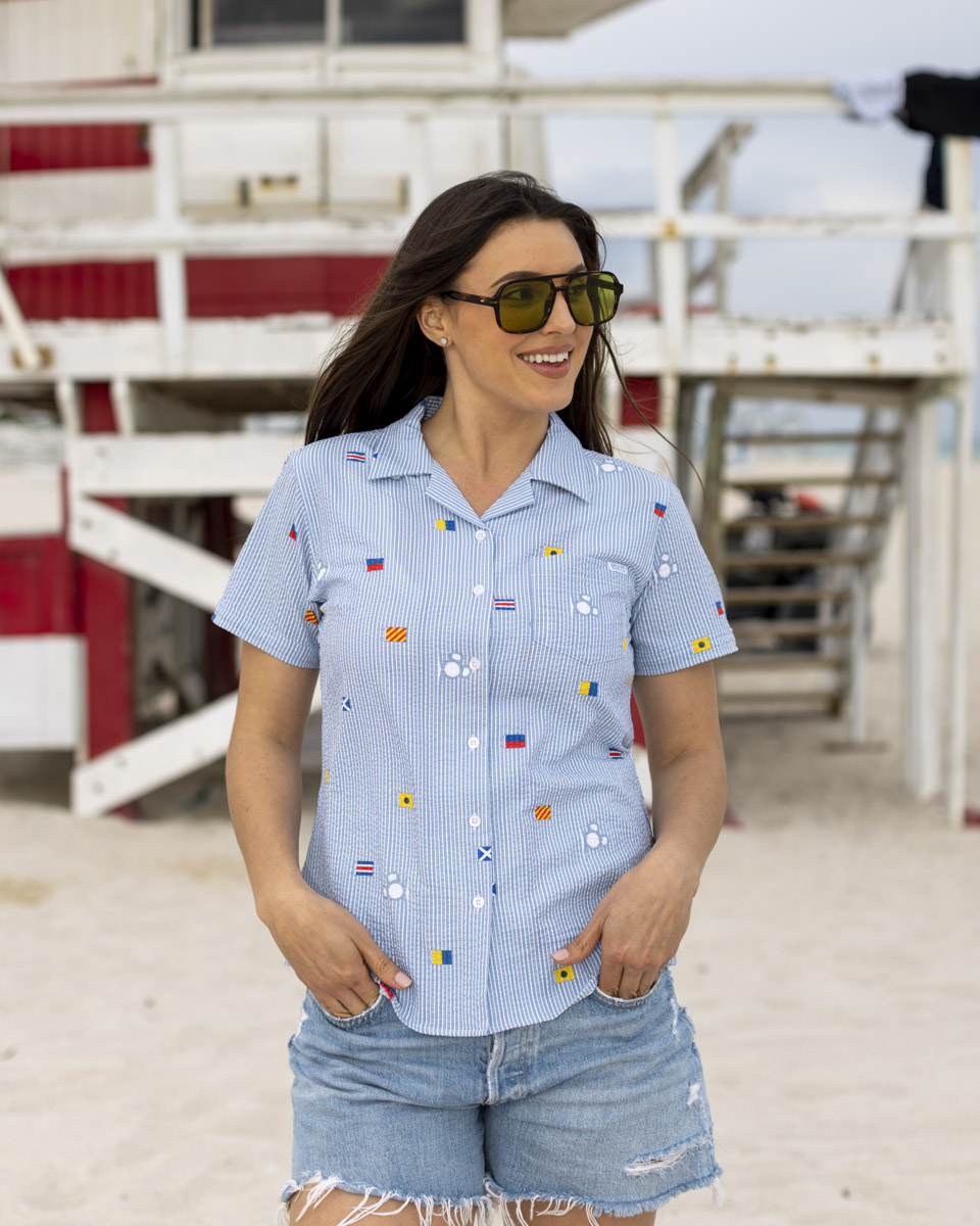 - “Maritime Mickey” - classic (unisex) style/sizing - stretch seersucker shorts