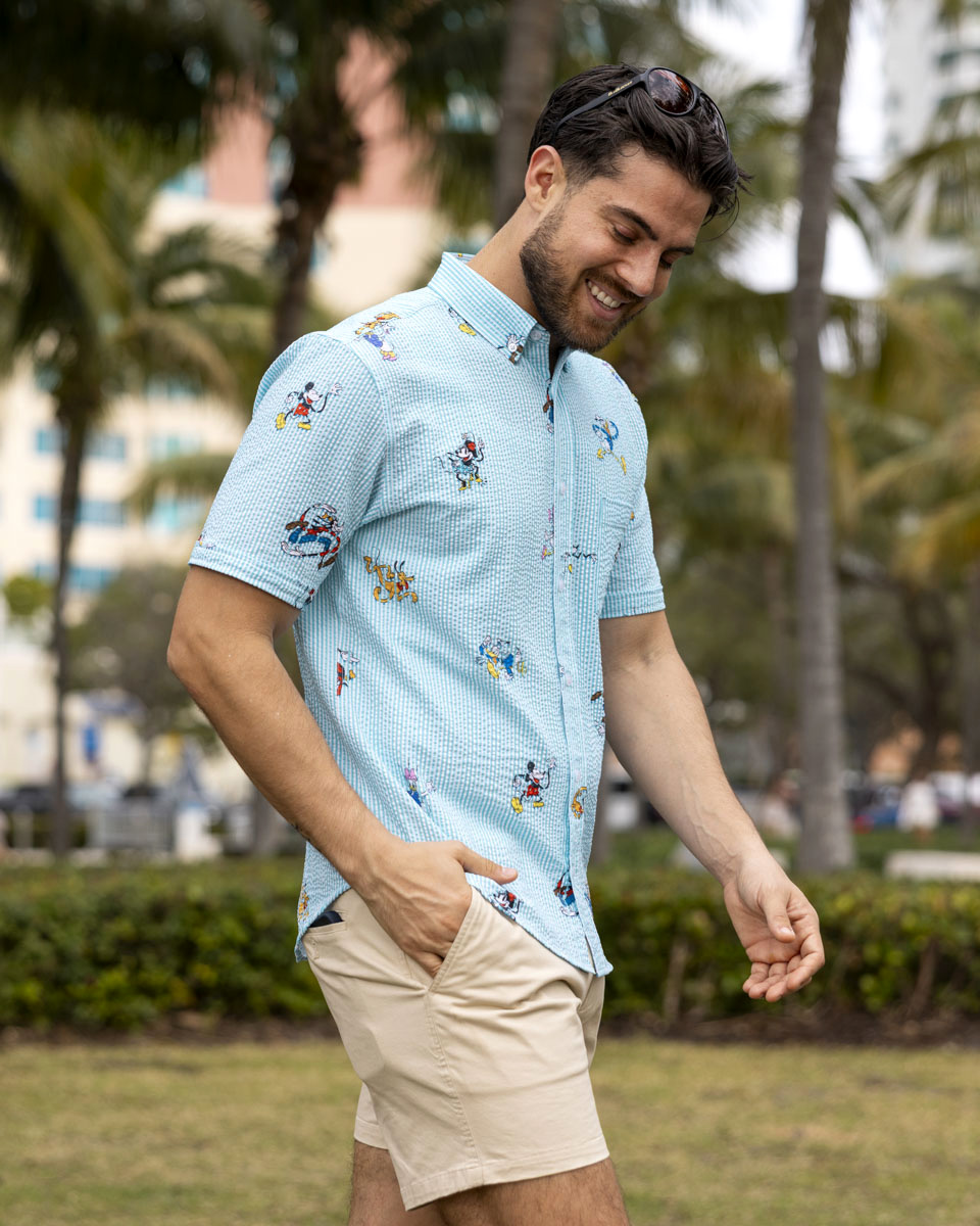 The Mickey Mouse Seersucker Collection puts the global icon in the spotlight across three charming patterns available in classic (unisex) style/sizing with select designs available in women’s style/sizing. Two of the designs are also featured on RSVLTS’ stretch seersucker shorts so you can put together a complete look!