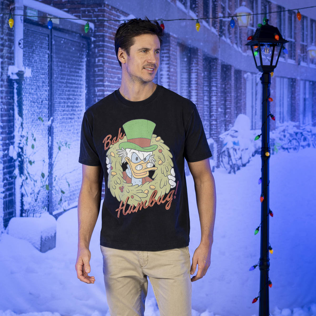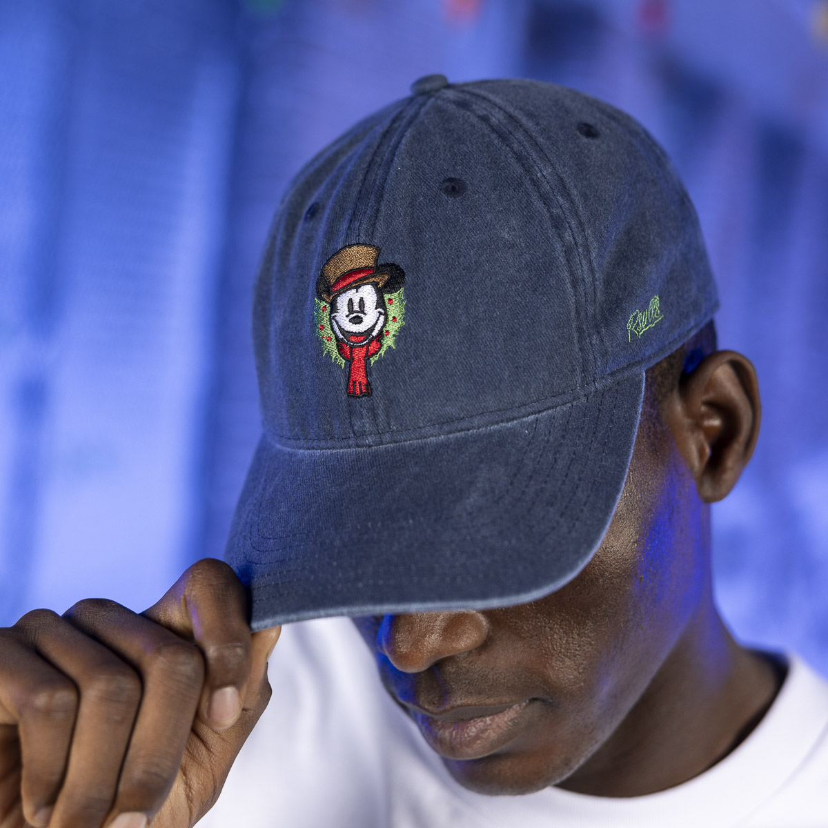 “Yuletide Mickey” is the crewneck sweatshirt in this drop that puts a dapper Mickey Mouse in the spotlight, surrounded by a holiday wreath. Bringing the whole assortment together are dad hats “Yuletide Mickey” and “Bah Humbug!” with embroidered logos of Mickey and Scrooge. Each pair perfectly with the corresponding crewneck, but they also work well on their own.