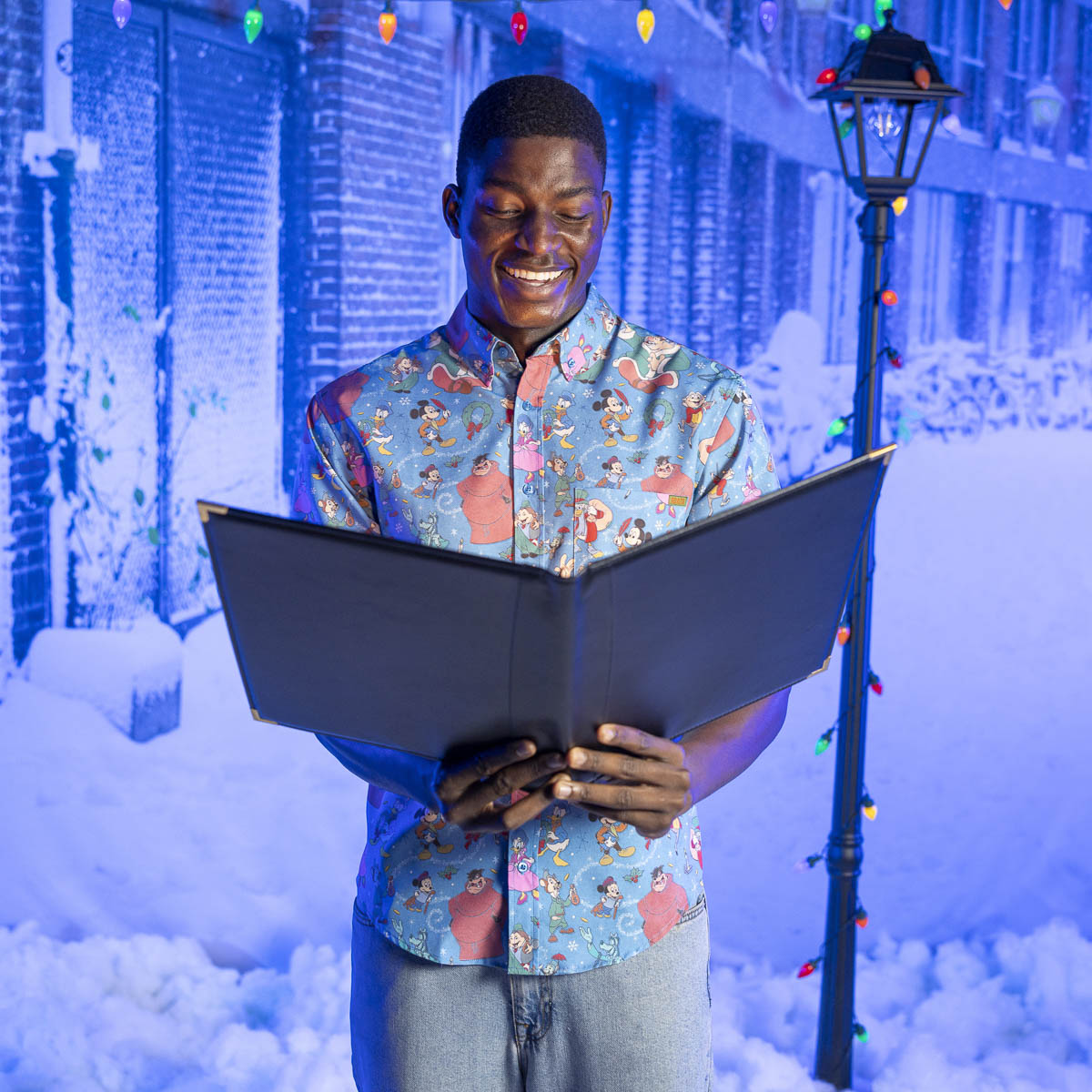 Fans of Disney's version of A Christmas Carol are sure to love the creative designs included in this drop like the Kunuflex "Oh What a Merry Christmas Day," boasting vintage artwork and sketch-like drawings of Mickey and his pals. Another option, “Season’s Wreathings,” is a cheery green that presents the whole cast framed with holiday wreaths.