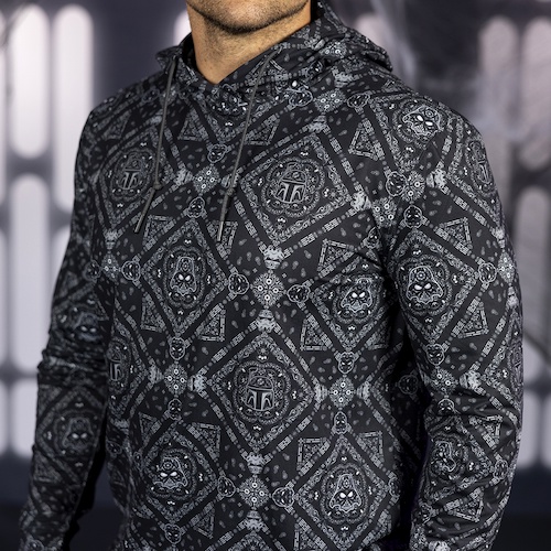 “Lil Troopers (Dark Side)" follows a popular RSVLTS trend that features mini icons from the franchise. For this shirt, it’s a series of Stormtrooper helmets set against a solid black background. Fans of the performance hoodie and joggers will want to check out “Day of the Darkside." Inspired by decorative Dia De Los Muertos artwork, this pattern presents the helmets of Darth Vader, Boba Fett, and ranking Stormtroopers surrounded by imperial lighting, paisley swirls, and the Imperial insignia.