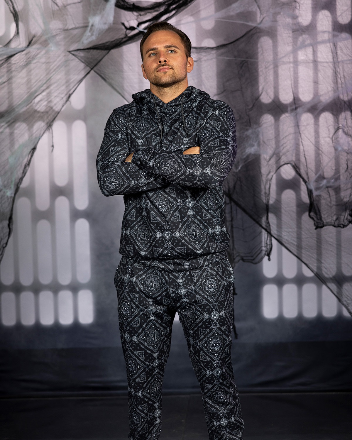 “Lil Troopers (Dark Side)" follows a popular RSVLTS trend that features mini icons from the franchise. For this shirt, it’s a series of Stormtrooper helmets set against a solid black background. Fans of the performance hoodie and joggers will want to check out “Day of the Darkside." Inspired by decorative Dia De Los Muertos artwork, this pattern presents the helmets of Darth Vader, Boba Fett, and ranking Stormtroopers surrounded by imperial lighting, paisley swirls, and the Imperial insignia.