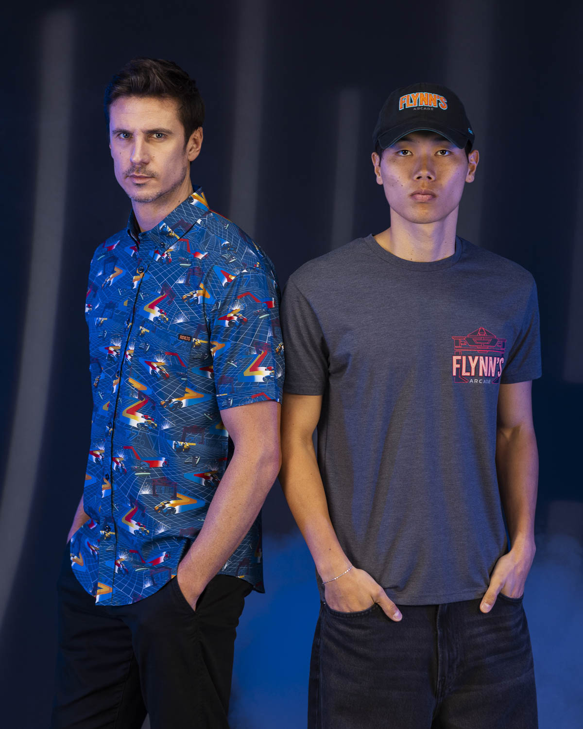 You can complete your look with a dad hat; or the star piece of the collection is a reversible bomber jacket that features the Light Suit on one side and Flynn's Arcade iconography on the other! See you on the Grid!