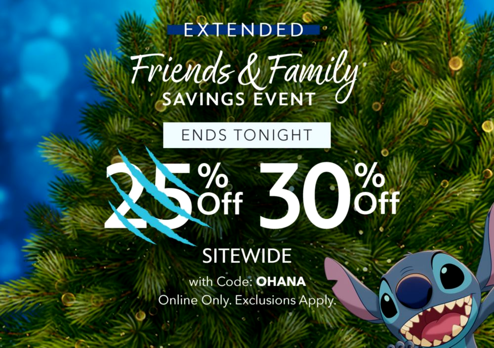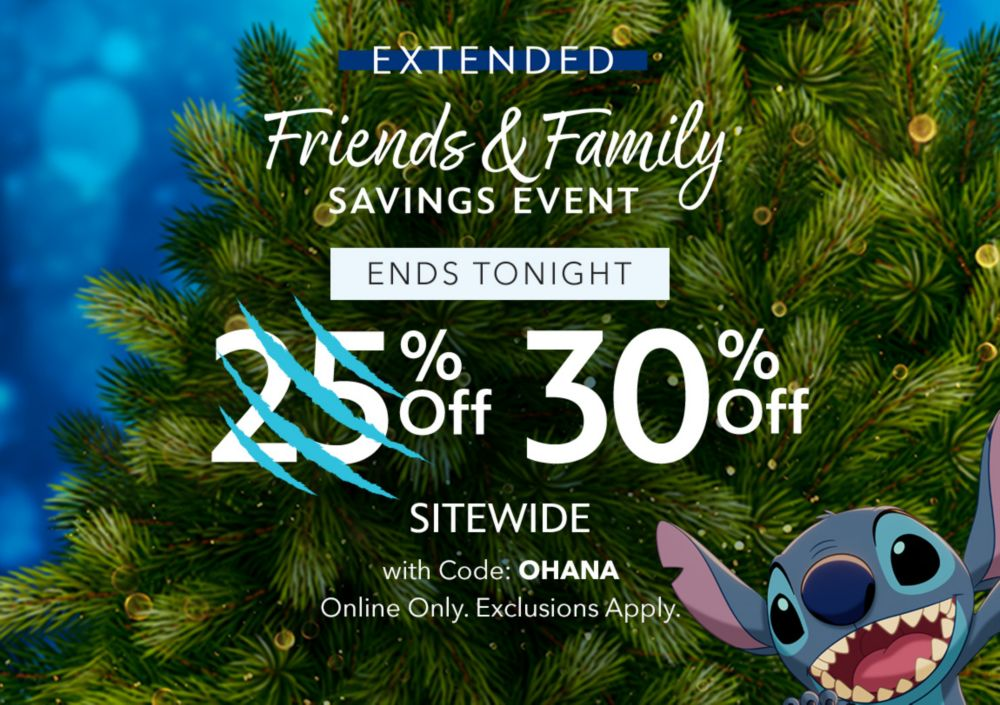 Disney Store's fan-favorite Friends and Family Savings event is back and guests will have the whole weekend shop and save! Whether it's toys, apparel, home decor, or accessories, everyone can enjoy 25% off sitewide (exclusions apply) with the code: OHANA.
