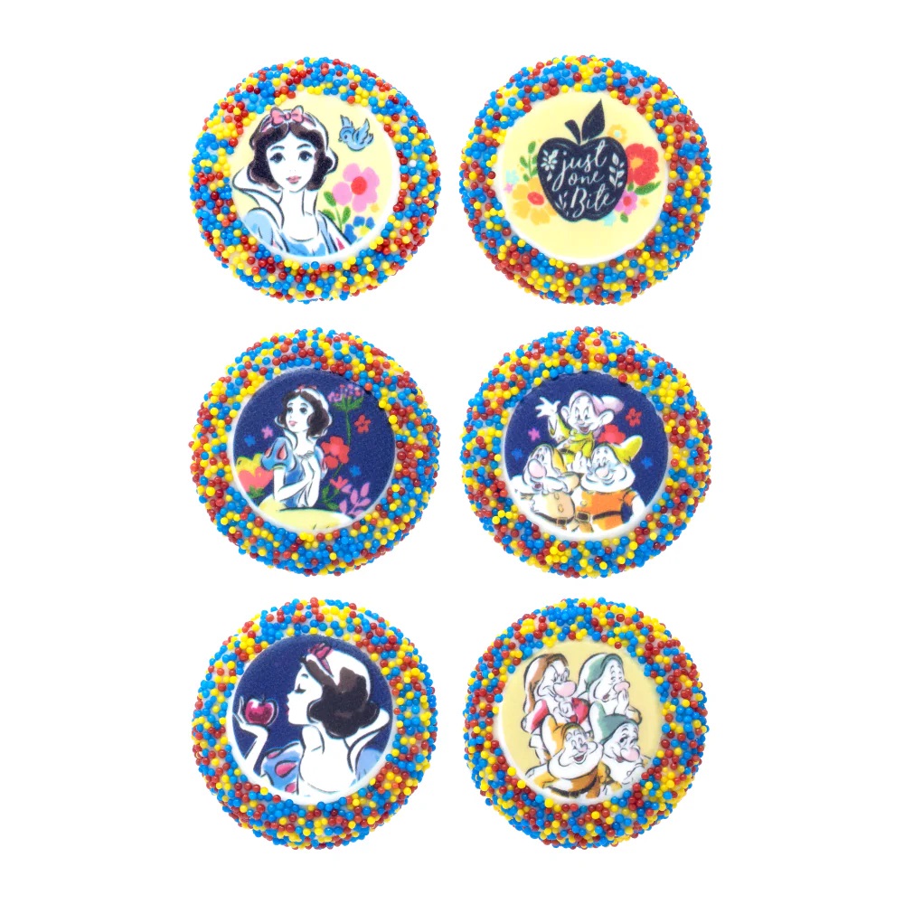 Each box contains six “Snow White and the Seven Dwarfs” themed cookies.