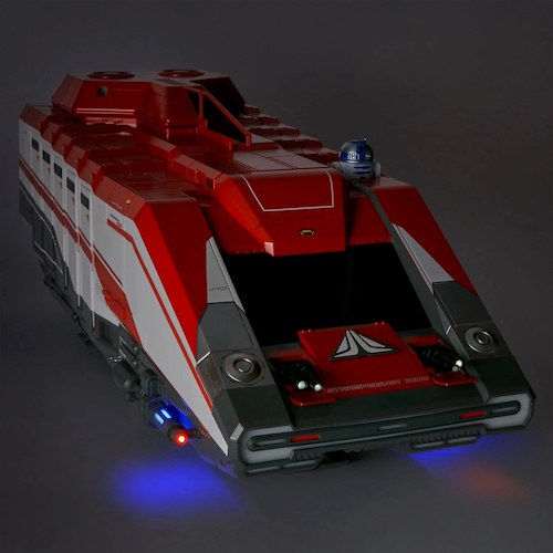 - Now a large play set “1000" model—themed to Star Tours – The Adventures Continue (2011)—is headed to Disney Store with an orange exterior, blue seats (that will hold action figures!), and special effects including a screen that shows scenes from the ride.