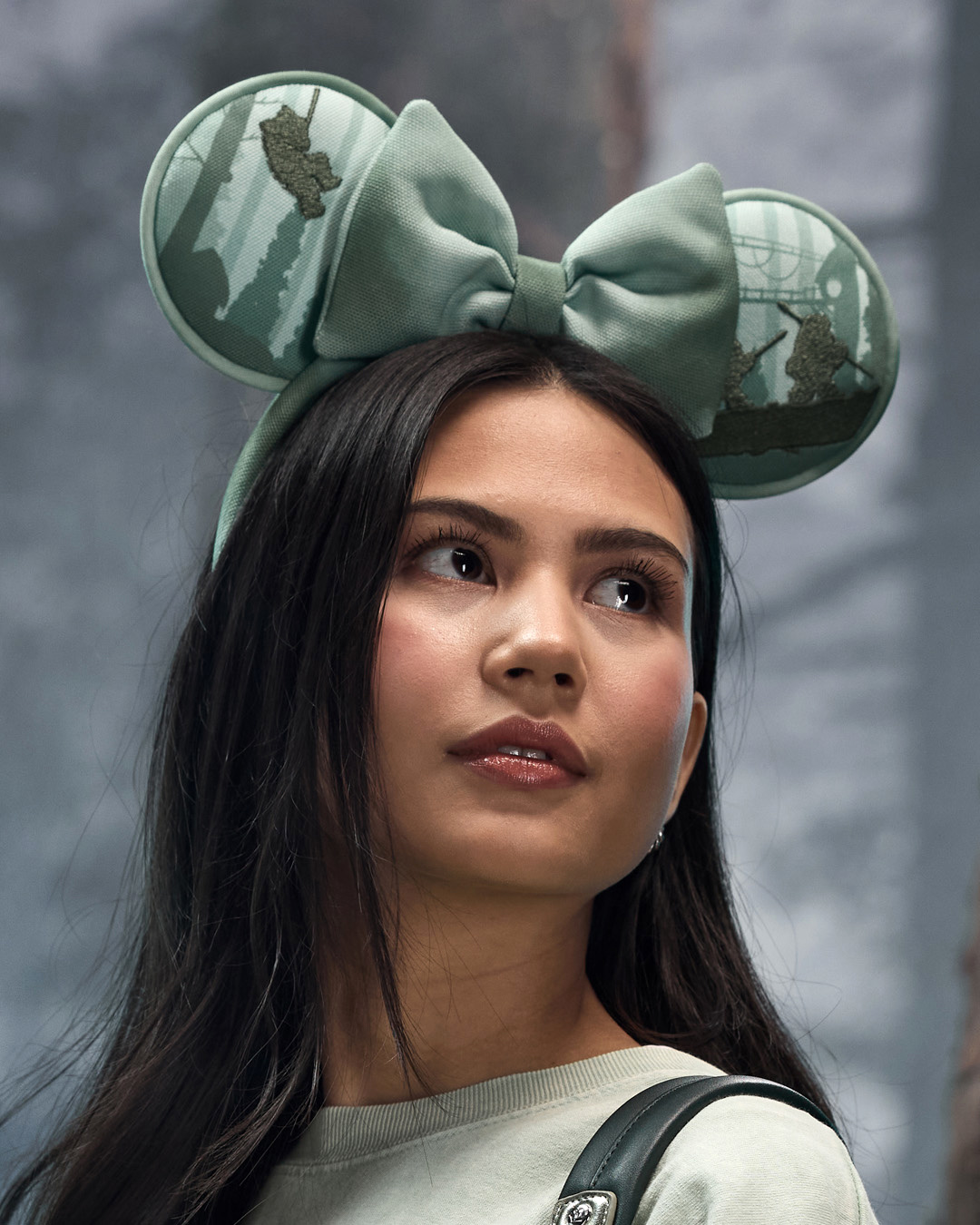 - Then, top off your look with the Ewoks Ear Headband for Adults, decorated with a textured fabric bow and embroidered Ewok silhouettes.