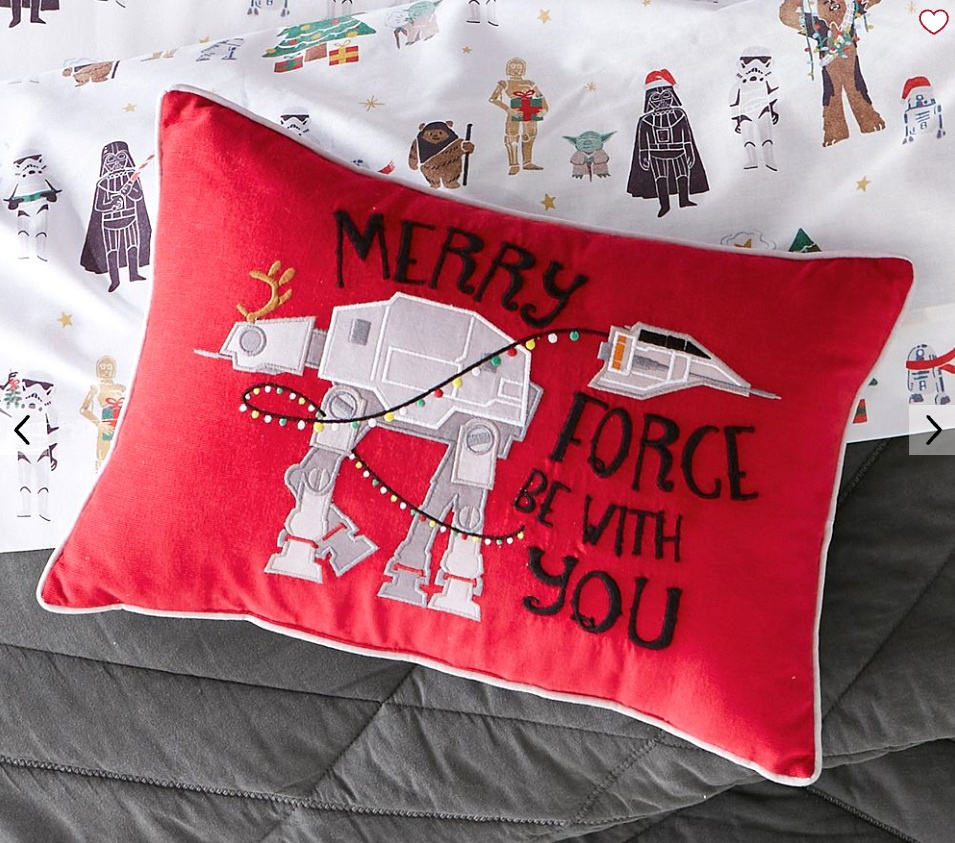 Star Wars Christmas Pillow from Pottery Barn Kids ($44.50) - Speaking of stuff that would look nice on couches, you can wish "Merry Force Be with You" to visitors during the holiday season with this decorative pillow featuring an AT-AT reindeer and a Snowspeeder trailing a string of Christmas lights.