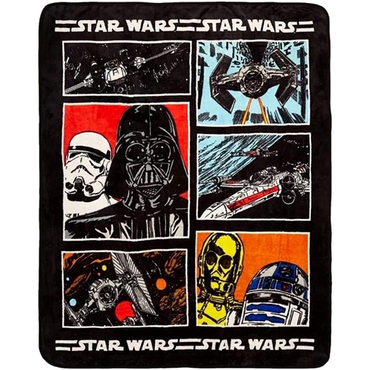 Star Wars Microfiber Silk Touch Throw from Jay Franco ($29.94) - First up is this really cook-looking throw blanket featuring comic book-style images of Darth Vader, an Imperial Stormtrooper, the droids C-3PO and R2-D2, and some famous Star Wars starfighters. This would look great on any fan's couch-- in fact, it's already on mine!