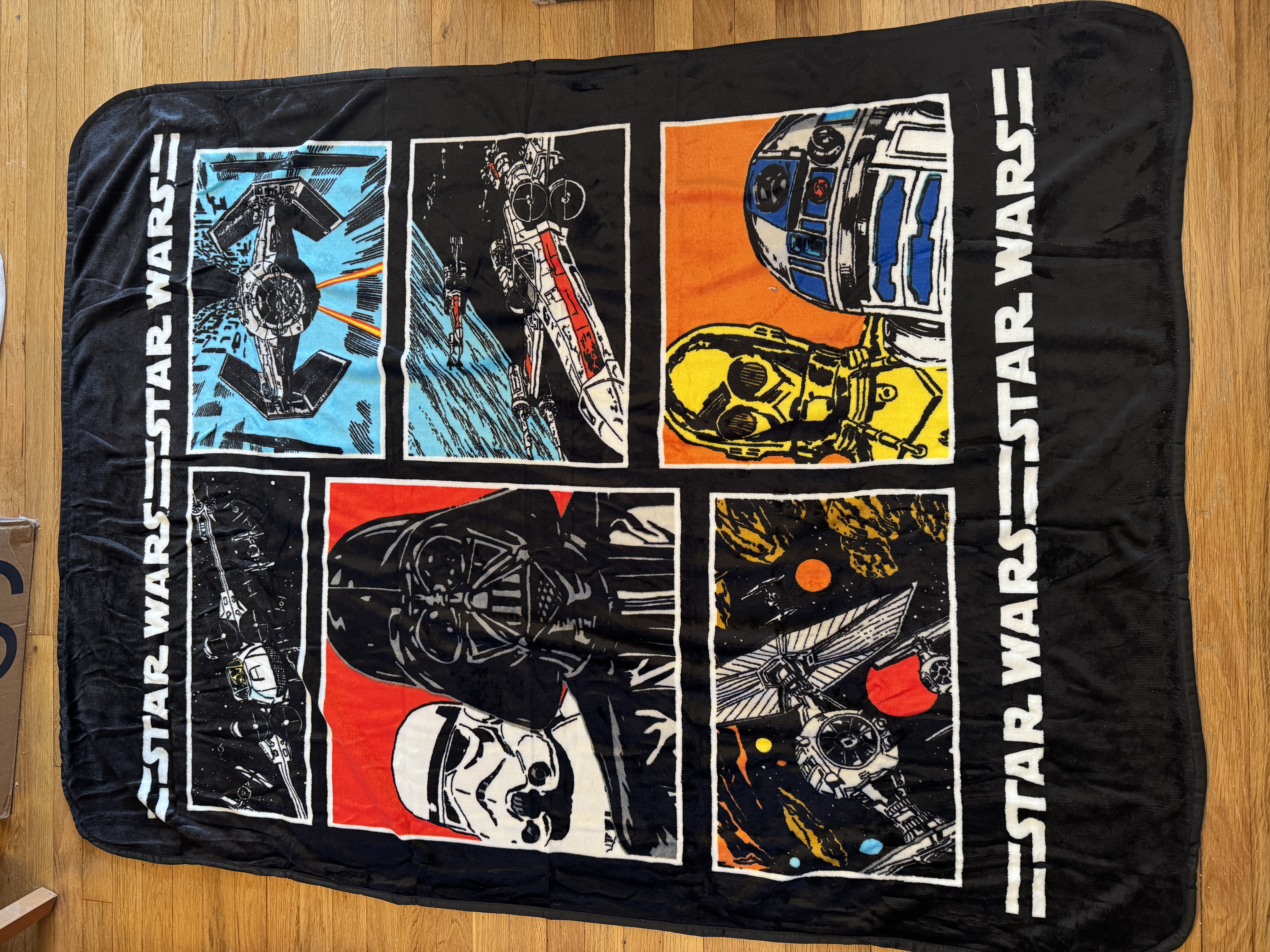 Star Wars Microfiber Silk Touch Throw from Jay Franco ($29.94) - First up is this really cook-looking throw blanket featuring comic book-style images of Darth Vader, an Imperial Stormtrooper, the droids C-3PO and R2-D2, and some famous Star Wars starfighters. This would look great on any fan's couch-- in fact, it's already on mine!