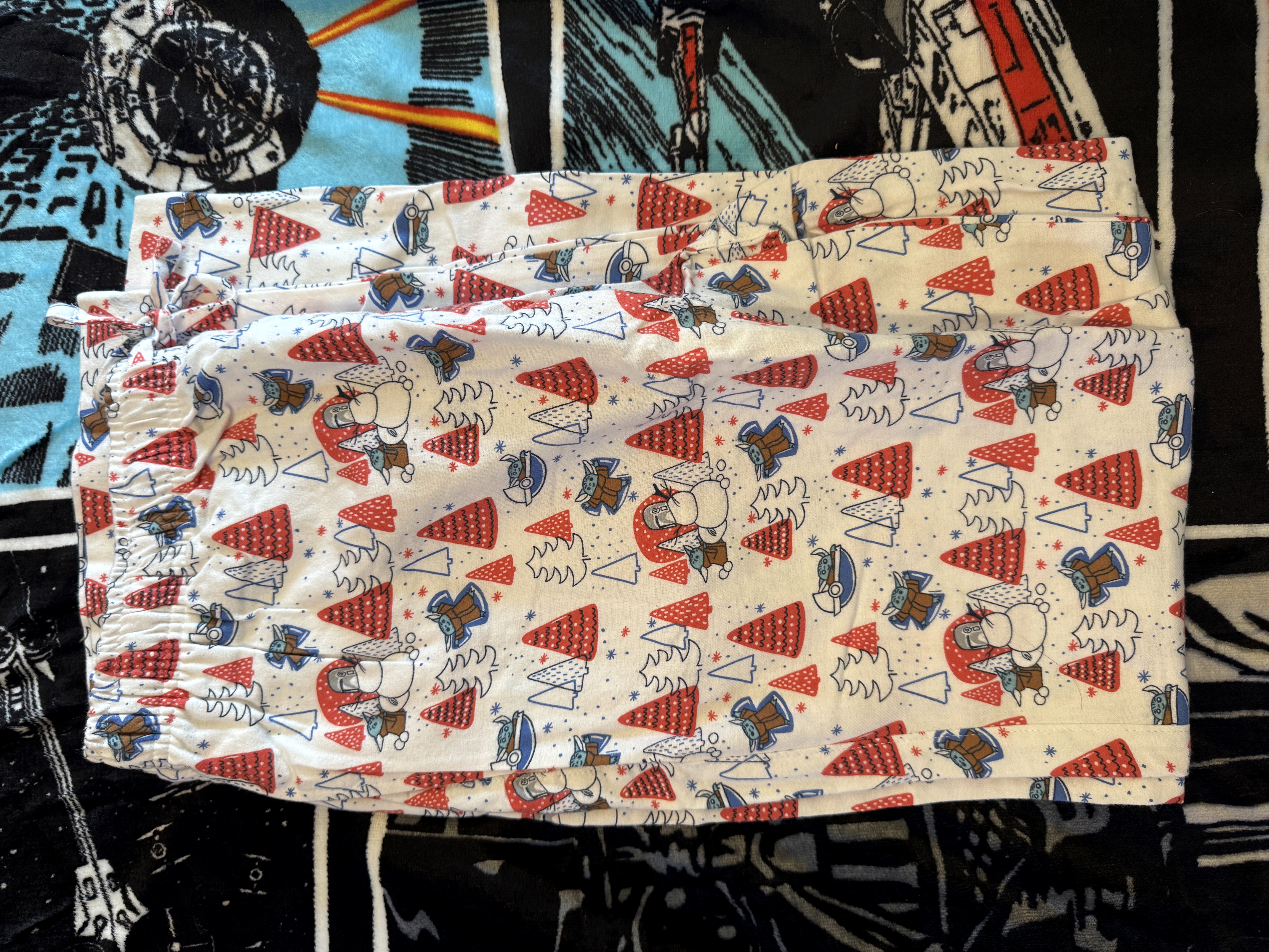 Star Wars Mando Winter Men's Flannel Pajama Sleep Set from Amazon Essentials ($17.60) - It's beddy-bye time for Grogu, but first he gets to play in the snow, building his own Din Djarin snowman on the pattern of this comfy-looking set.
