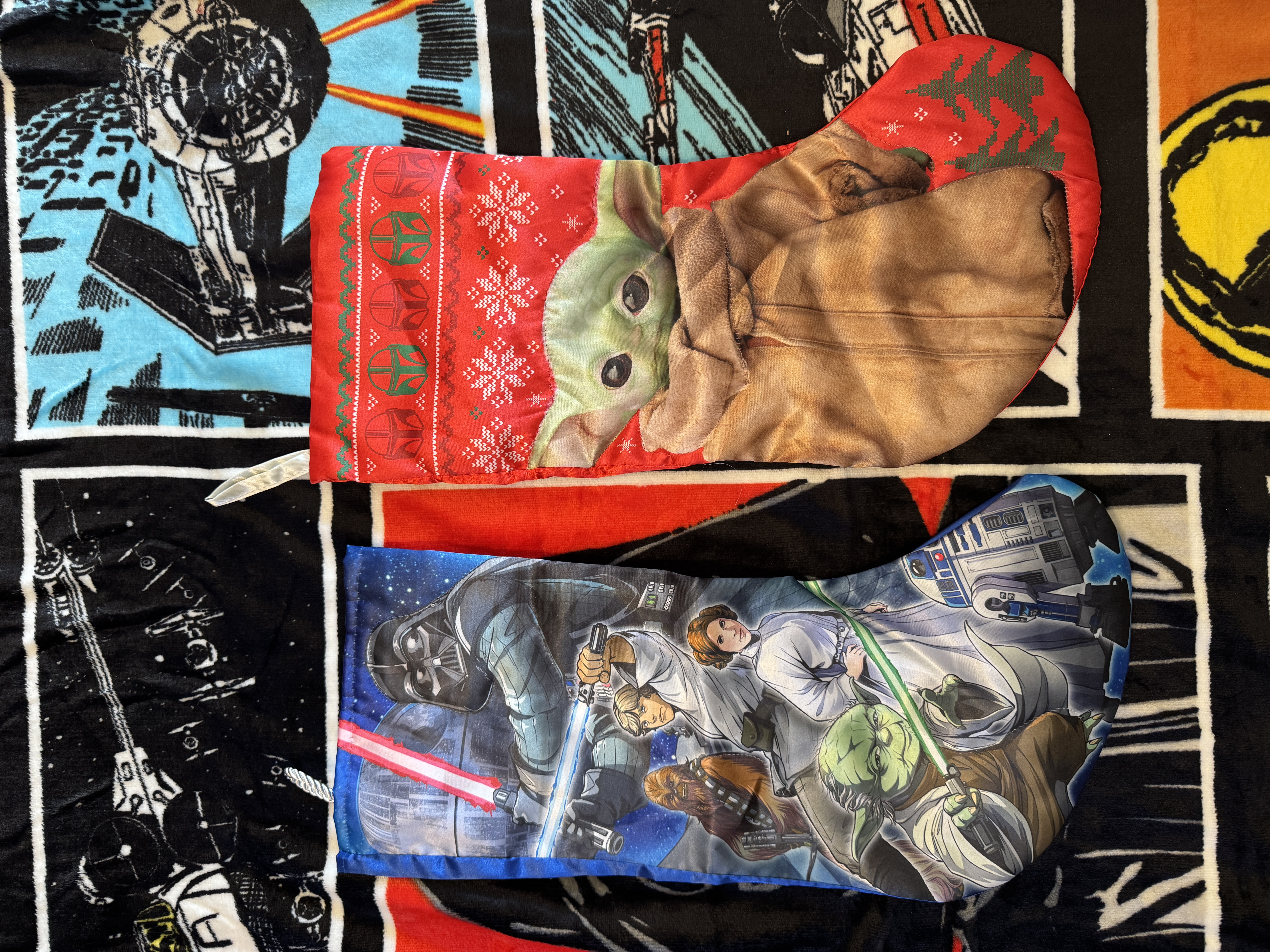 Star Wars Classic Trilogy Christmas Stocking ($14.95) and Star Wars "The Child" Christmas Stocking from Kurt Adler ($14.07) - Imagine kids waking up on Christmas morning and finding these officially licensed Star Wars stocking chock-full of goodies.