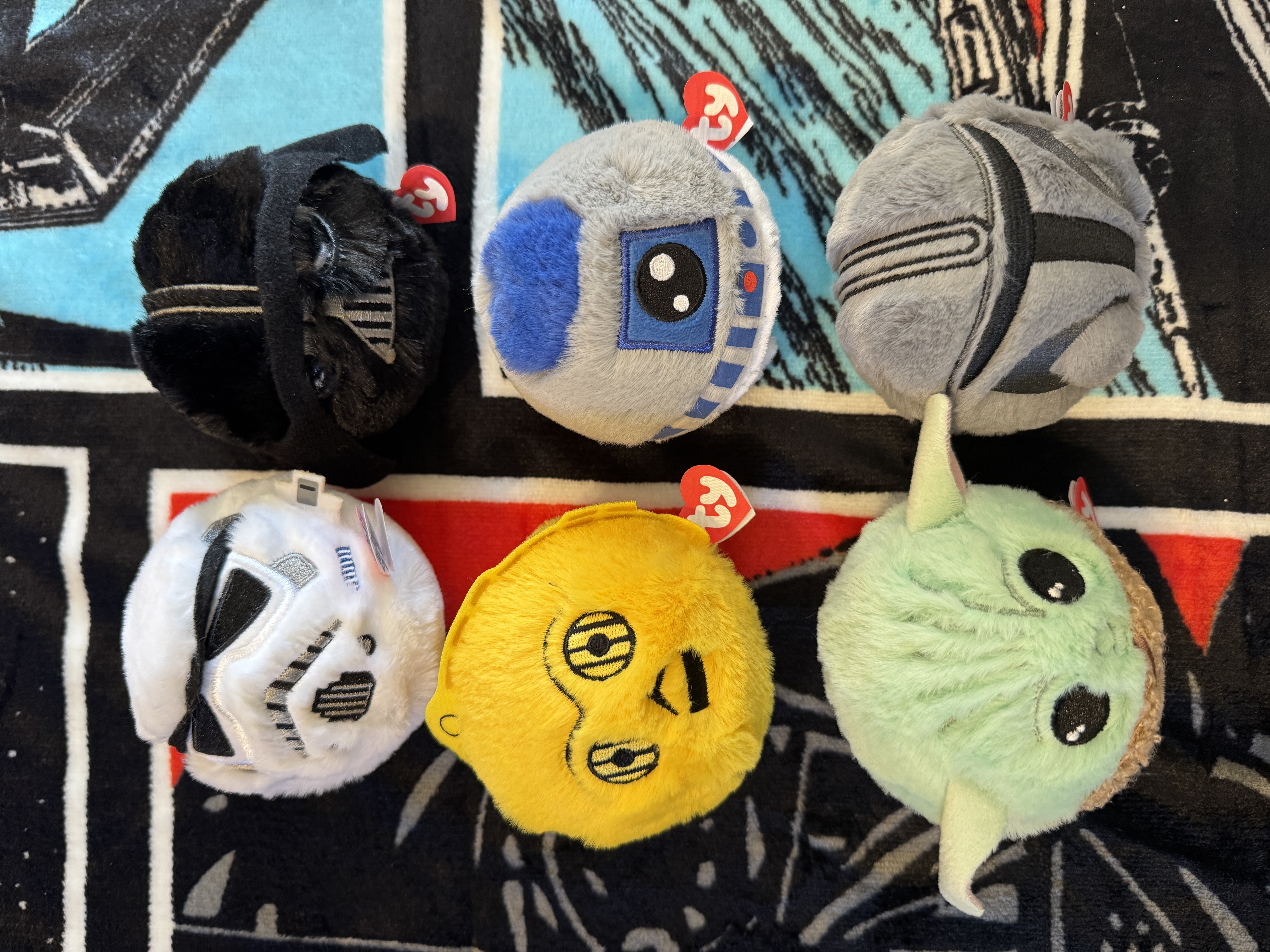 Star Wars Beanie Bouncers from Ty ($5.99 each) - I wasn't sure what to make of these when I first came across them, but what I can tell you is they bounce like tennis balls, they're adorable, and (though they may not be designed as pet toys) my cats love them. Available as an Imperial Stormtrooper, Darth Vader, C-3PO, R2-D2, Grogu, and The Mandalorian (AKA Din Djarin).