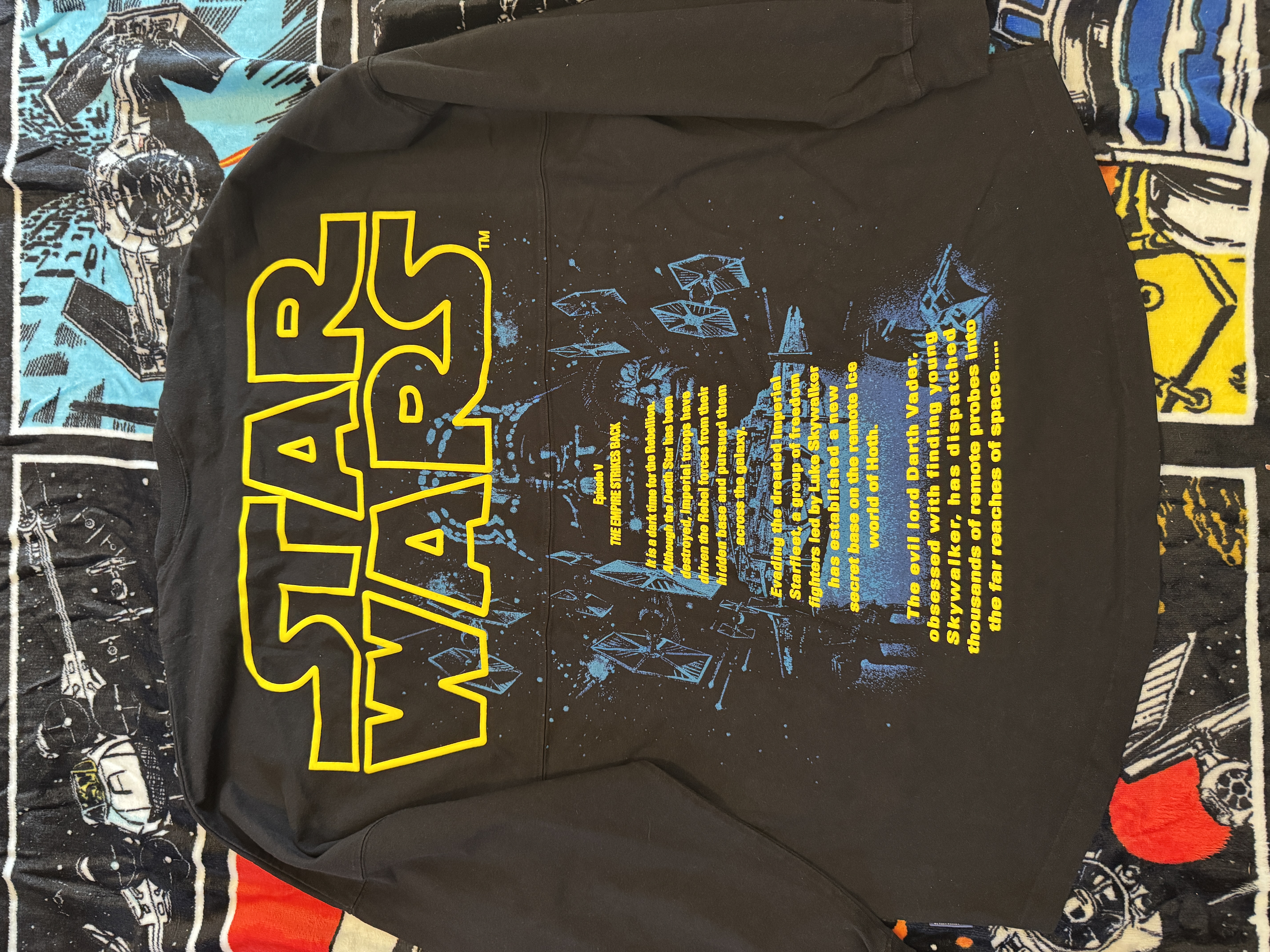 Star Wars Word Crawl from Spirit Jersey ($89.99) - This is now officially the second Spirit Jersey I've ever owned (the first was a Pirates of the Caribbean one I bought at Disneyland) and it's really cool. Featuring the opening text crawl from The Empire Strikes Back-- against a backdrop of artist Drew Struzan's Special Edition poster for the movie-- on the back, and the familiar Star Wars logo on the front.