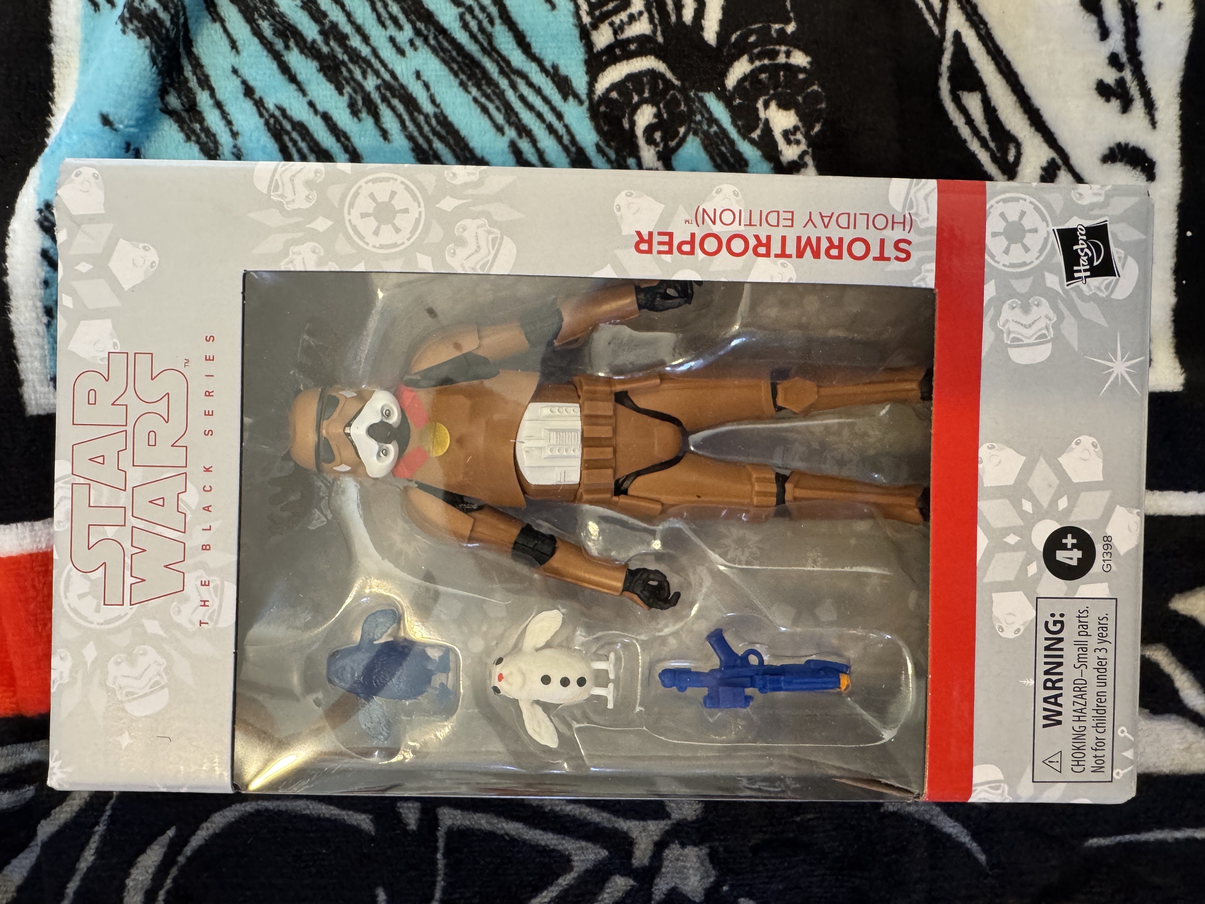 Star Wars: The Black Series Stormtrooper (Holiday Edition) from Hasbro ($17.49) - On Dasher, on Dancer, on Imperial Stormtrooper! Complete with antlers, a toy blaster, and two Porgs (one ice Porg and one snow Porg) this bad guy is ready to pull Santa's sleigh... too bad for his aim!