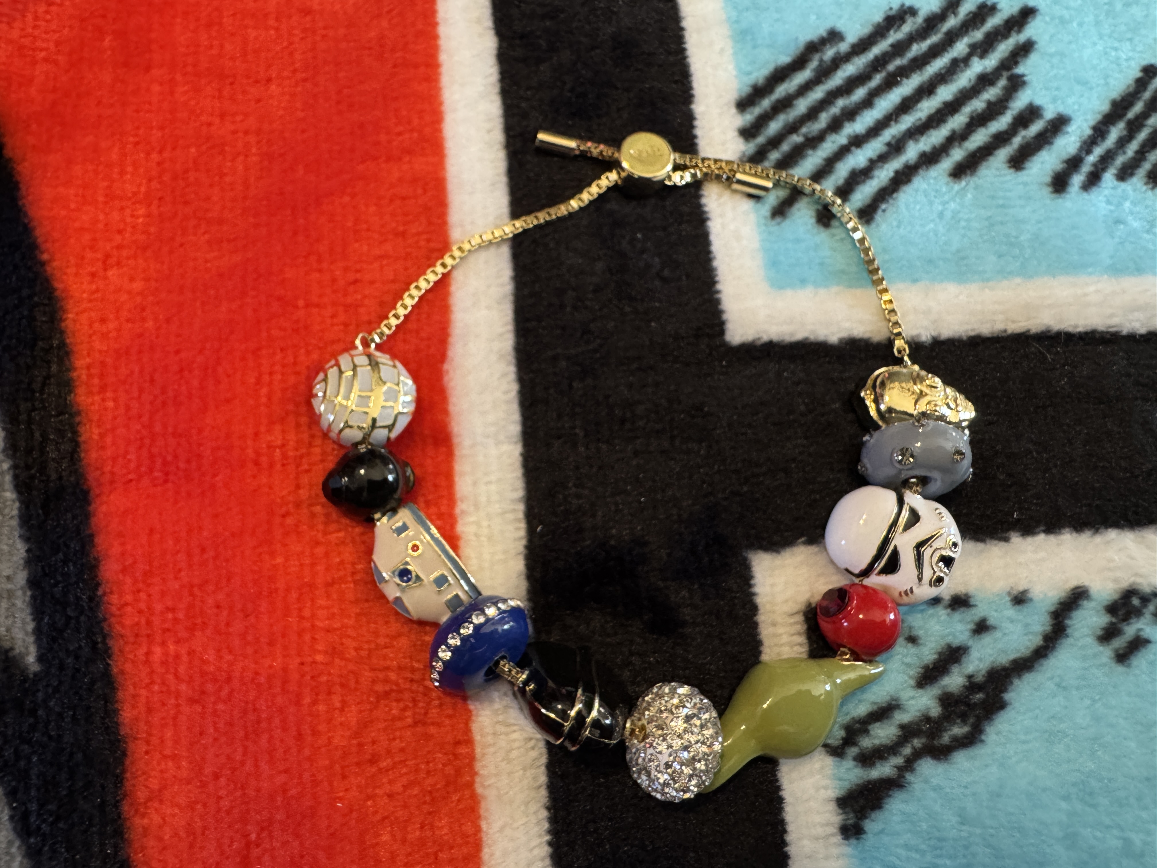 Star Wars Friends Forever Charm Bracelet from BaubleBar ($54) - R2-D2, Yoda, Darth Vader, a Stormtrooper, C-3PO, and more! They're all here, and this bracelet is sure to charm anyone you encounter while wearing it.