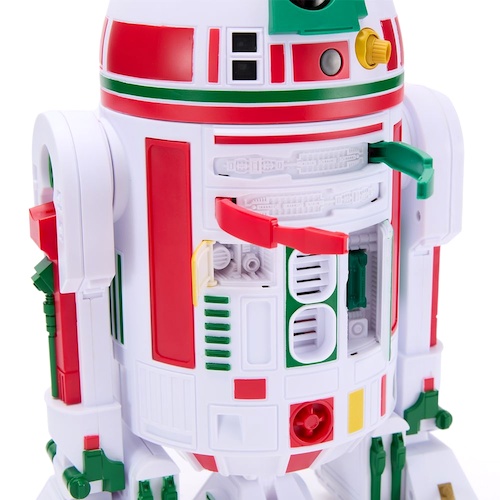 - Not feeling the excitement of the interactive version? Good news! There’s a miniature copy of R2-H25 from the Droid Factory line. Keeping in line with its bigger counterpart, the small R2 figure boasts a festive Christmas color scheme, this time reminiscent of Candy Canes! It even has a bit of articulation so it can be posed among the other items in your Star Wars collection.