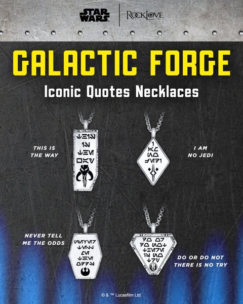 - Dubbed the STAR WARS™ | RockLove GALACTIC FORGE Collection, this new assortment consists of pendant necklaces inscribed with popular Star Wars quotes and sayings and embellished with cubic zirconia gems for just a touch of elegance and sparkle.