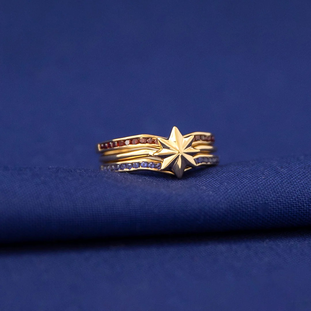 Marvel X RockLove MARVEL STUDIOS CAPTAIN MARVEL Crystal Star Stacker Rings