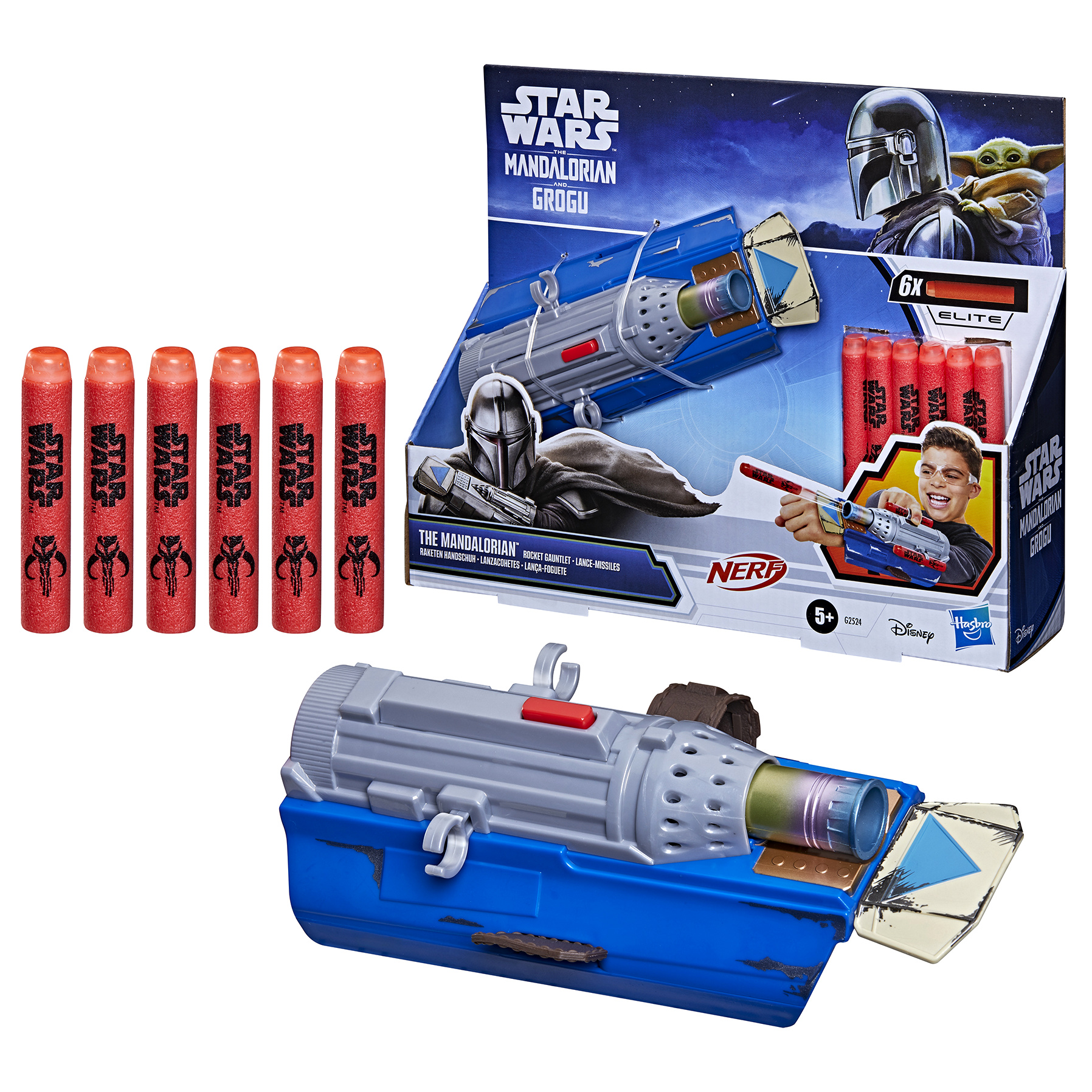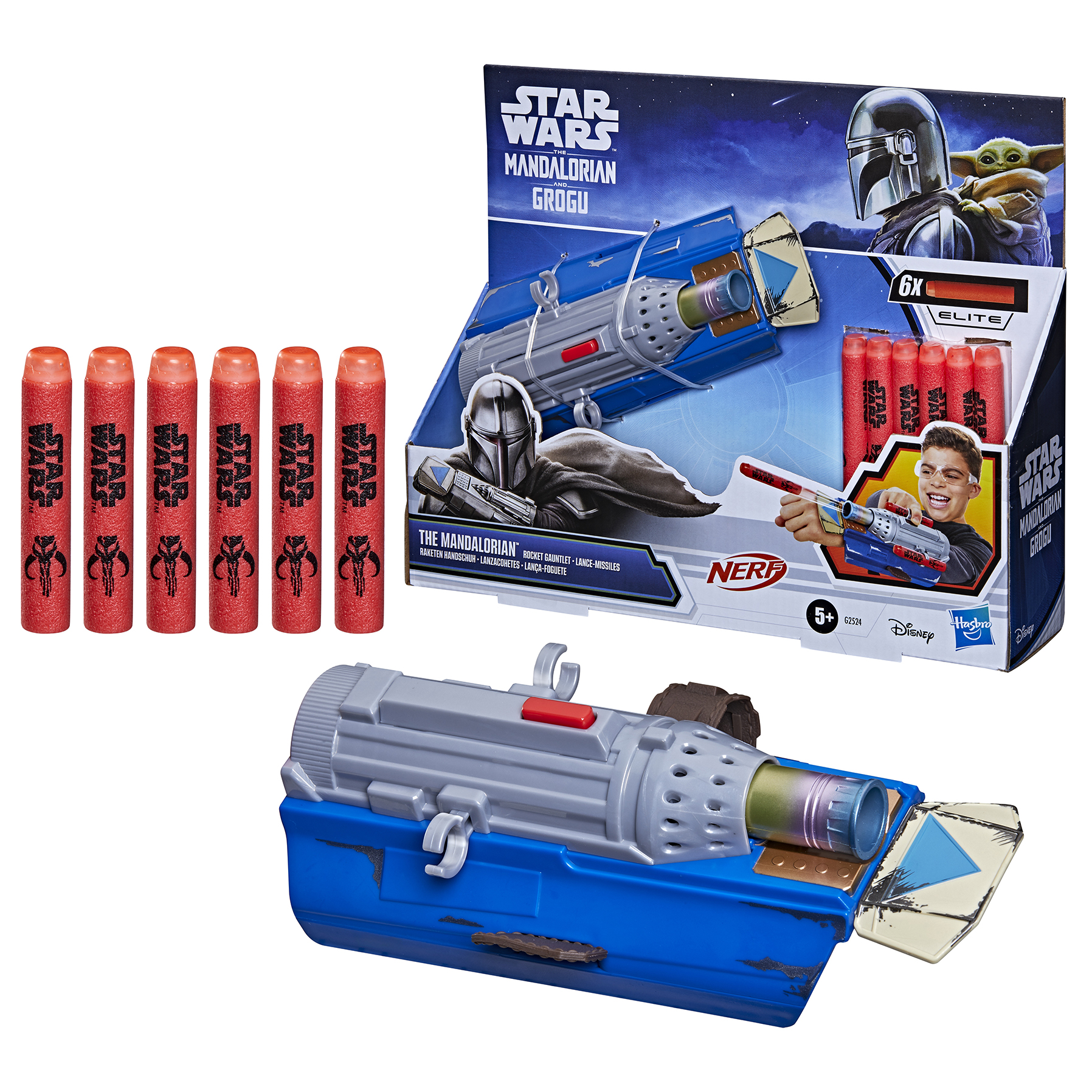 • First up is the Nerf Star Wars The Mandalorian and Grogu Rocket Gauntlet ($19.99), which will give kids ages 5 and up the chance to imagine becoming a galactic bounty hunter via adjustable straps, six Nerf Elite darts, and button-activated firing action. This role-play gauntlet also features storage space for two additional darts for quick reloading during play.