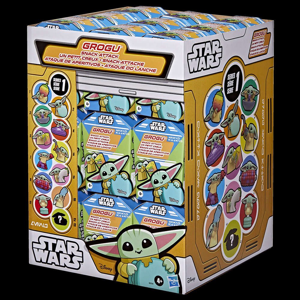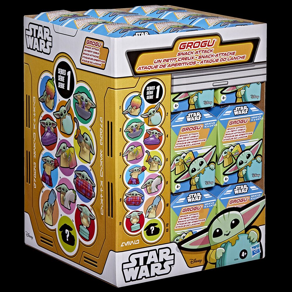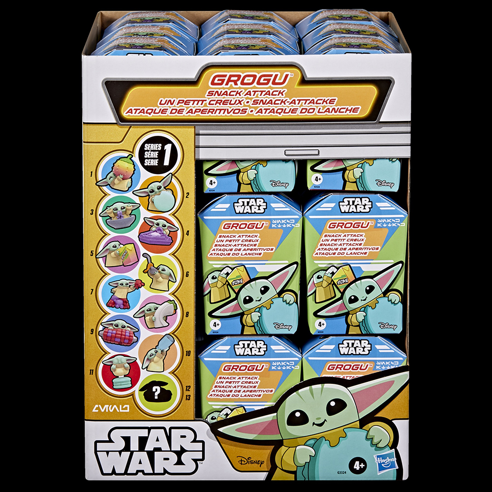 • Lastly, for slightly younger kids ages 4 and up, there's the Star Wars Grogu Snack Attack ($4.99 each). This is a Target-exclusive mystery figure collection, with each box containing one of 13 possible Grogu toys, with an equal 1/13 chance of getting any of them-- but two of those are special "donut figures" that Hasbro says will make your collection truly stand out.