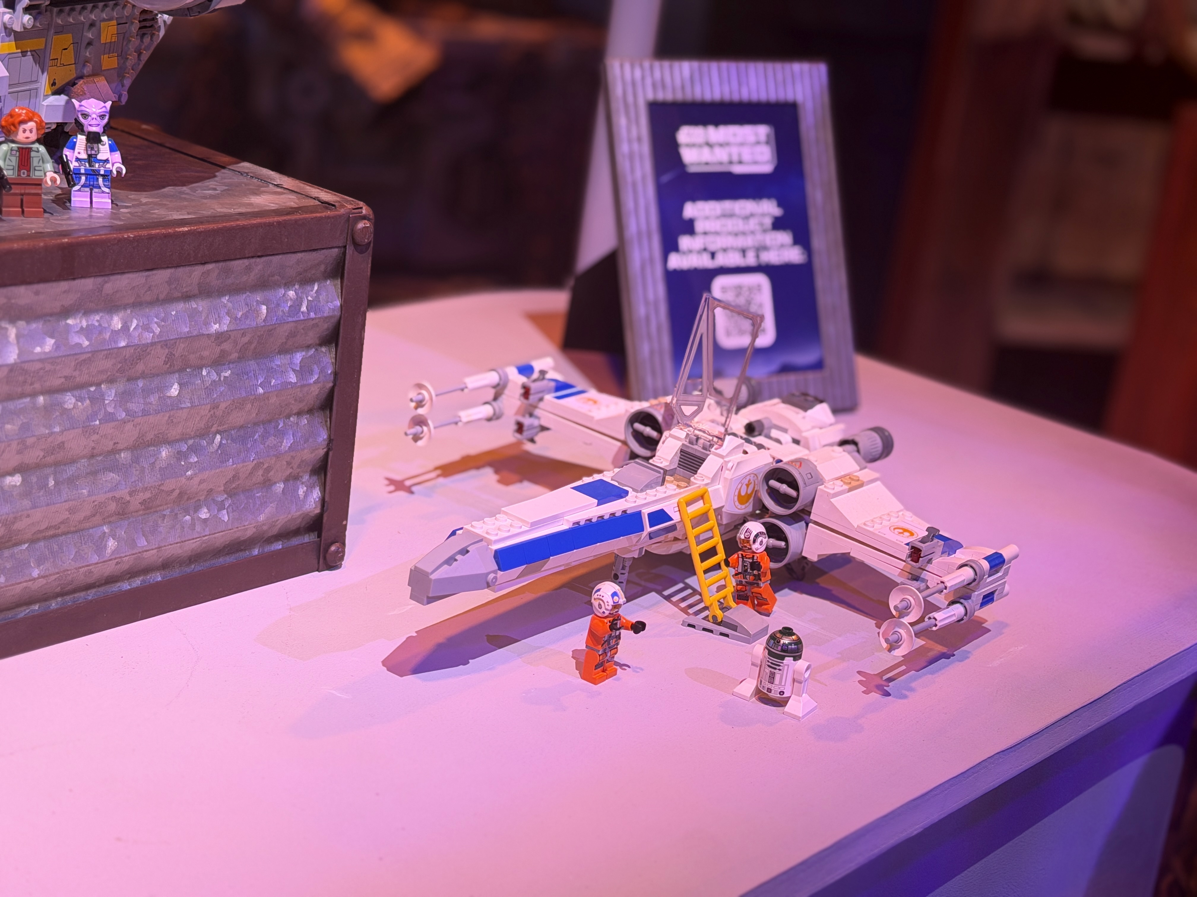 - You can stow equipment in the rear compartment, place the New Republic Astromech LEGO droid figure behind the cockpit, retract the landing gear, push the button to flip the wings into attack mode, and activate the 4-stud shooters.