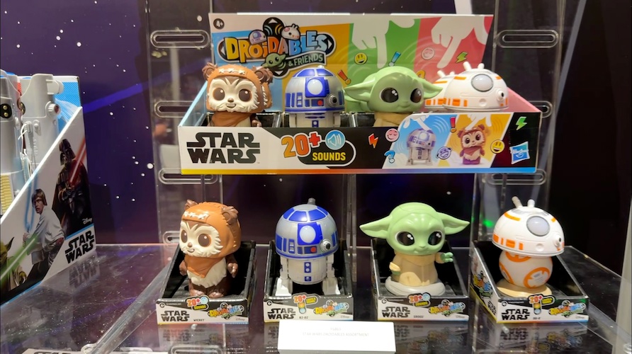 The galaxy’s cutest co-pilot gets an interactive upgrade in Star Wars Droidables Grogu, an expressive 4-inch figure priced at $19.99. With over 20 sound effects inspired by The Mandalorian, Grogu reacts when you rock his head forward, backward, side to side—or even in a circle—unlocking emotions from giggles to surprise. Batteries are included, so he’s ready to respond right out of the box, making him an ideal stress-relieving desk buddy or imaginative playmate for kids. Also seen on display were upcoming Droidables based on R2-D2, BB-8, and even Wicket the Ewok, suggesting a growing line of small-scale, big-personality figures ready to join your Star Wars collection.