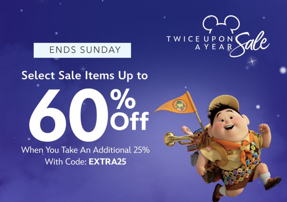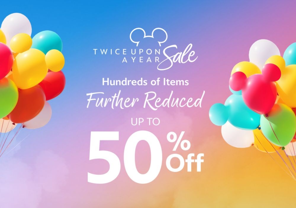 - Disney Store’s biannual Twice Upon A Year Sale continues with further reductions on hundreds of products. For a limited time guests can enjoy savings up to 50% off!
