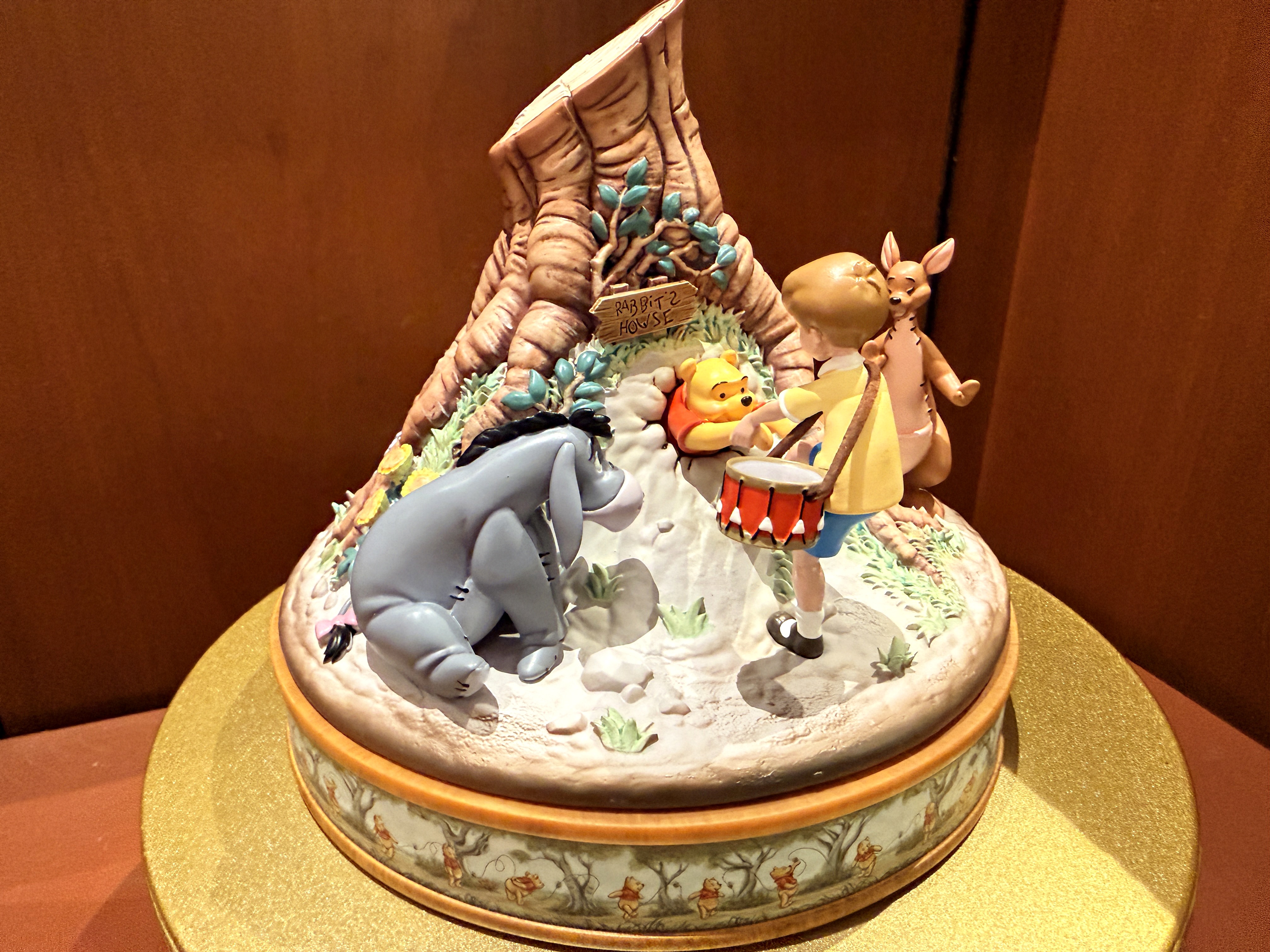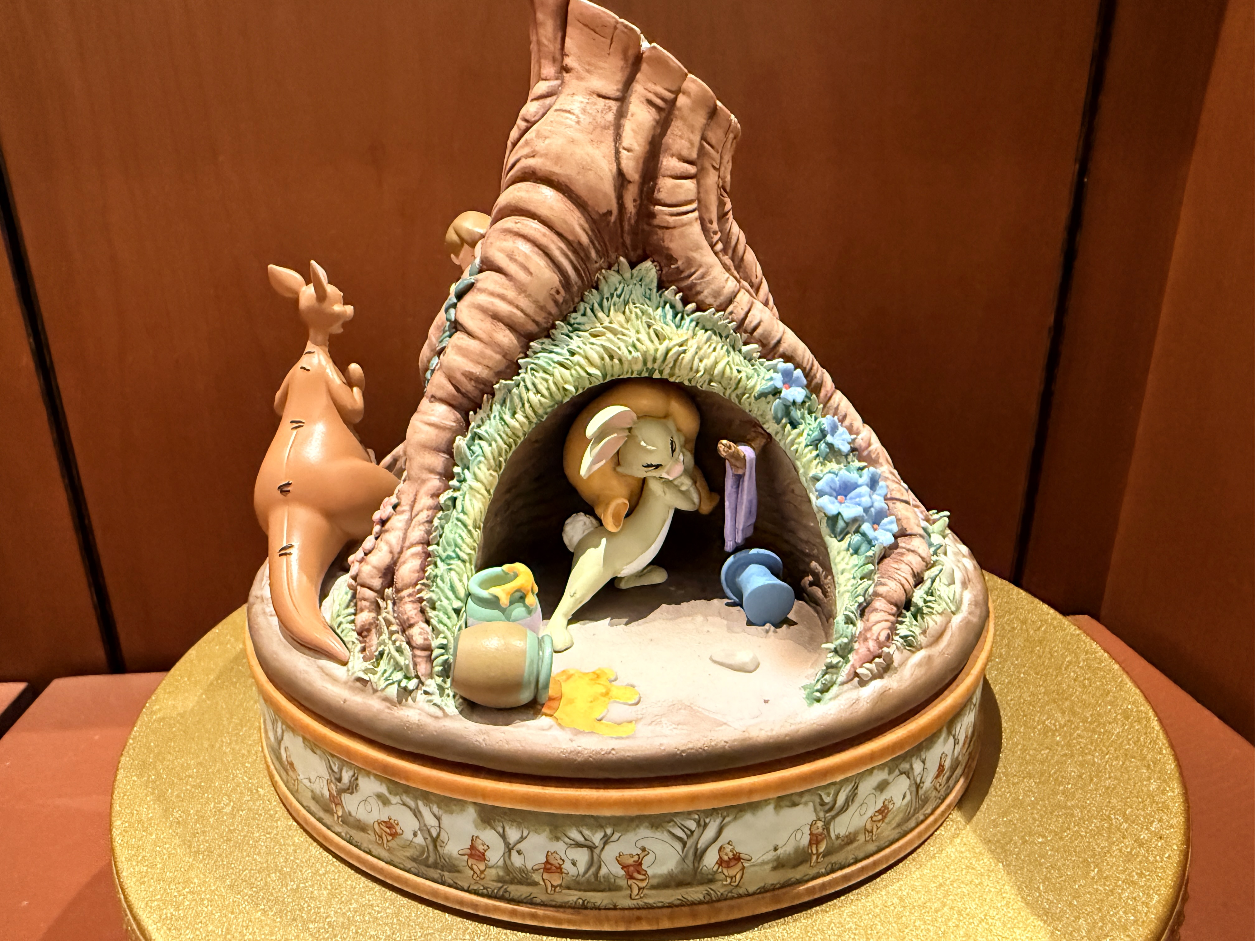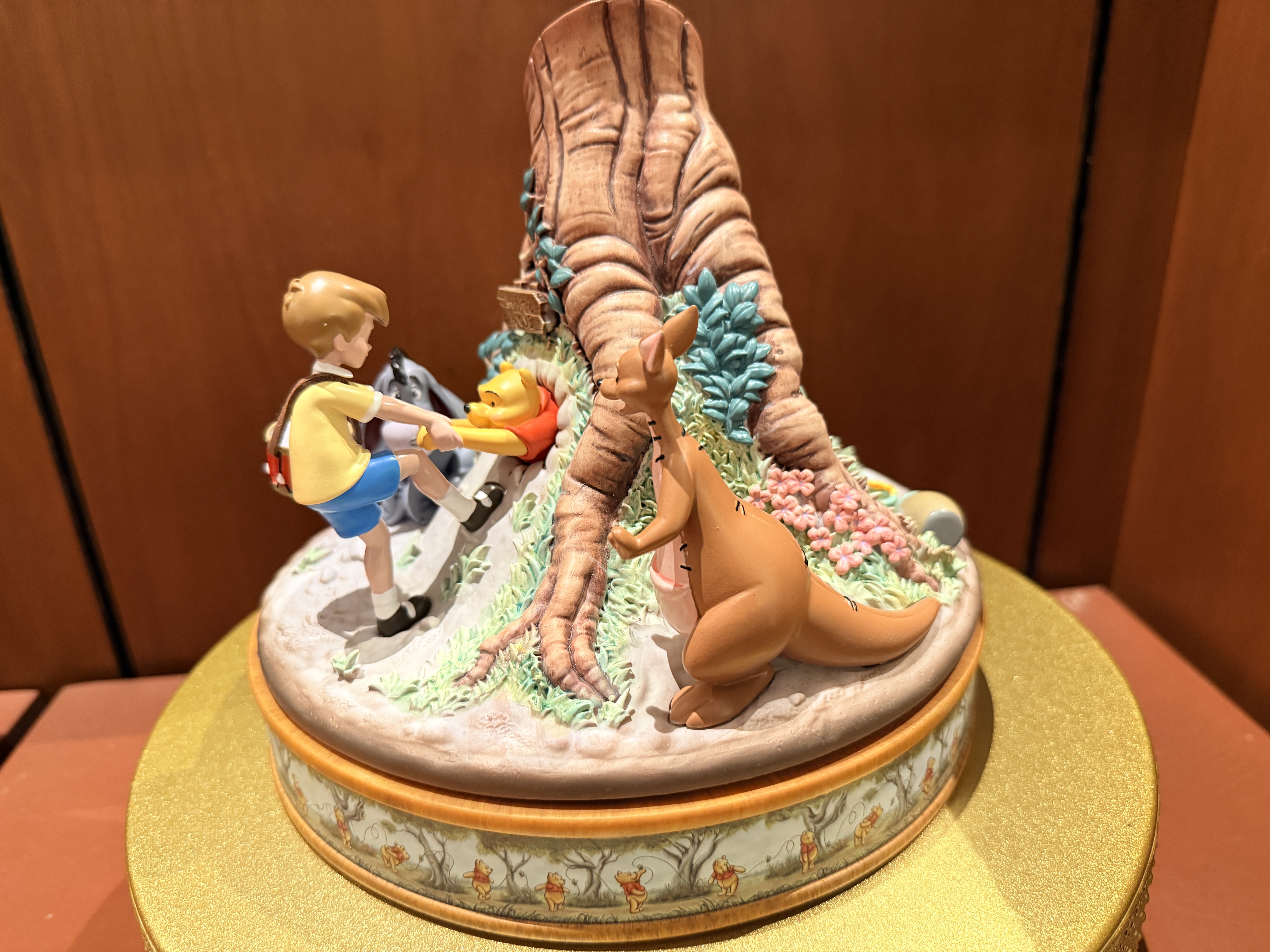 - The collectible recreates the iconic scene from Winnie the Pooh and the Honey Tree, where Pooh gets stuck in the door to his home, while Christopher Robin, Eeyore, and Kanga attempt to get him out.