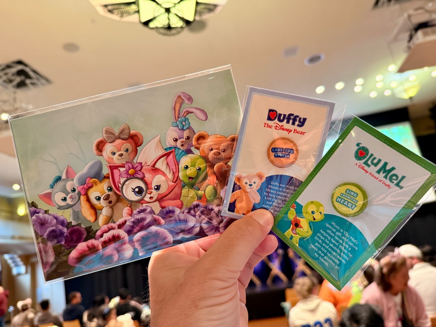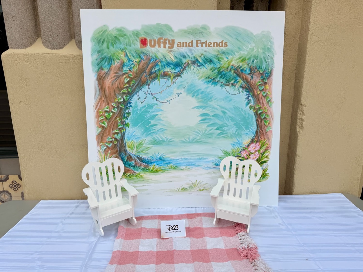 D23 offered photo opportunities for Duffy enthusiasts outside the former Grand Central Air Terminal, Los Angeles' original commercial airfield, now part of the Walt Disney Company's Grand Central Creative Campus. These featured small backdrops, allowing fans to highlight their beloved characters. Once inside guests were given a postcard set as well as a button to display their fandom.