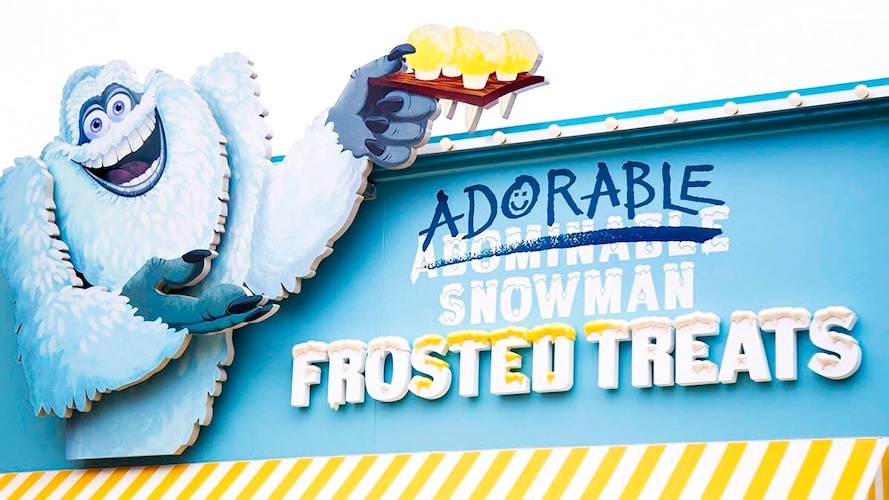 - Adorable Snowman Frosted Treats is known for its lemon-flavored soft serve swirl, a reference to the snowcone touting Abominable Snowman from Monsters, Inc.