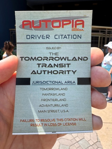 - Issued by the Tomorrowland Transit Authority – a fun nod to the Magic Kingdom’s PeopleMover – drivers are cited for one of six options.