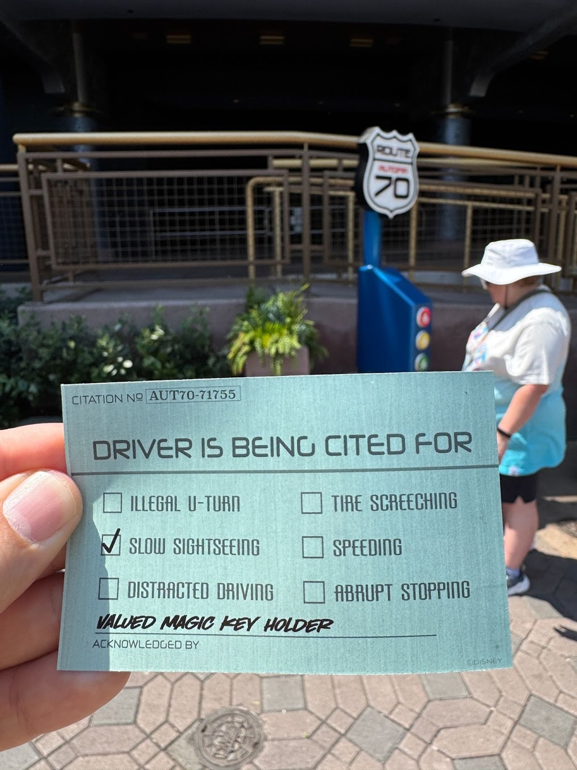- But now, a themed driving citation has been added, giving guests a little free souvenir.