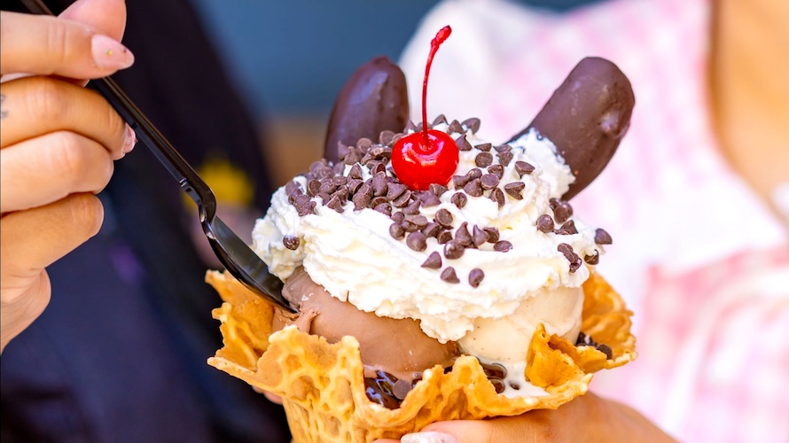 - Back on Buena Vista Street, guests can also get The Oswald Sundae at Clarabelle’s Hand-Scooped Ice Cream, featuring scoops of ice cream served in a waffle cup, topped off with chocolate frozen bananas.