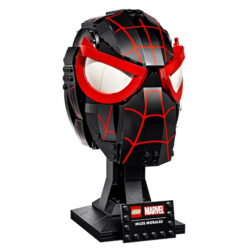 Celebrate the legendary character Miles Morales from the Spider-Verse with the collectible LEGO Marvel Miles Morales Mask. This intricately designed model showcases Spider-Man's signature black and red color scheme, standing over 7.5 inches tall and mounted on a robust stand that features a nameplate.