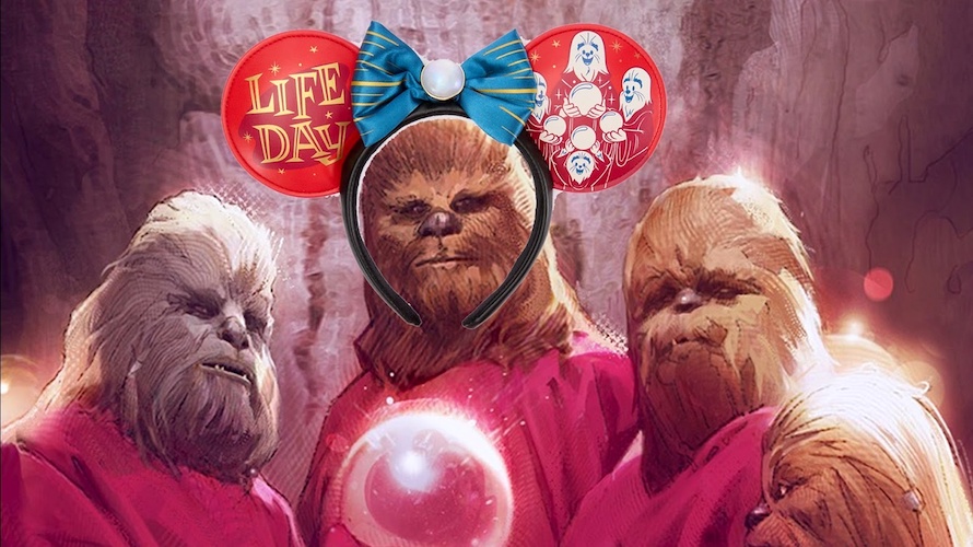The fictional holiday called Life Day made its debut in 1978’s infamous Star Wars Holiday Special, and now it’s celebrated every year on November 17th– the date the special first aired on CBS. For 2025, the Disney Store website has debuted a new Life Day mouse ear headband depicting Chewbacca and his family gathering around an orb on the Wookiee planet of Kashyyyk.
