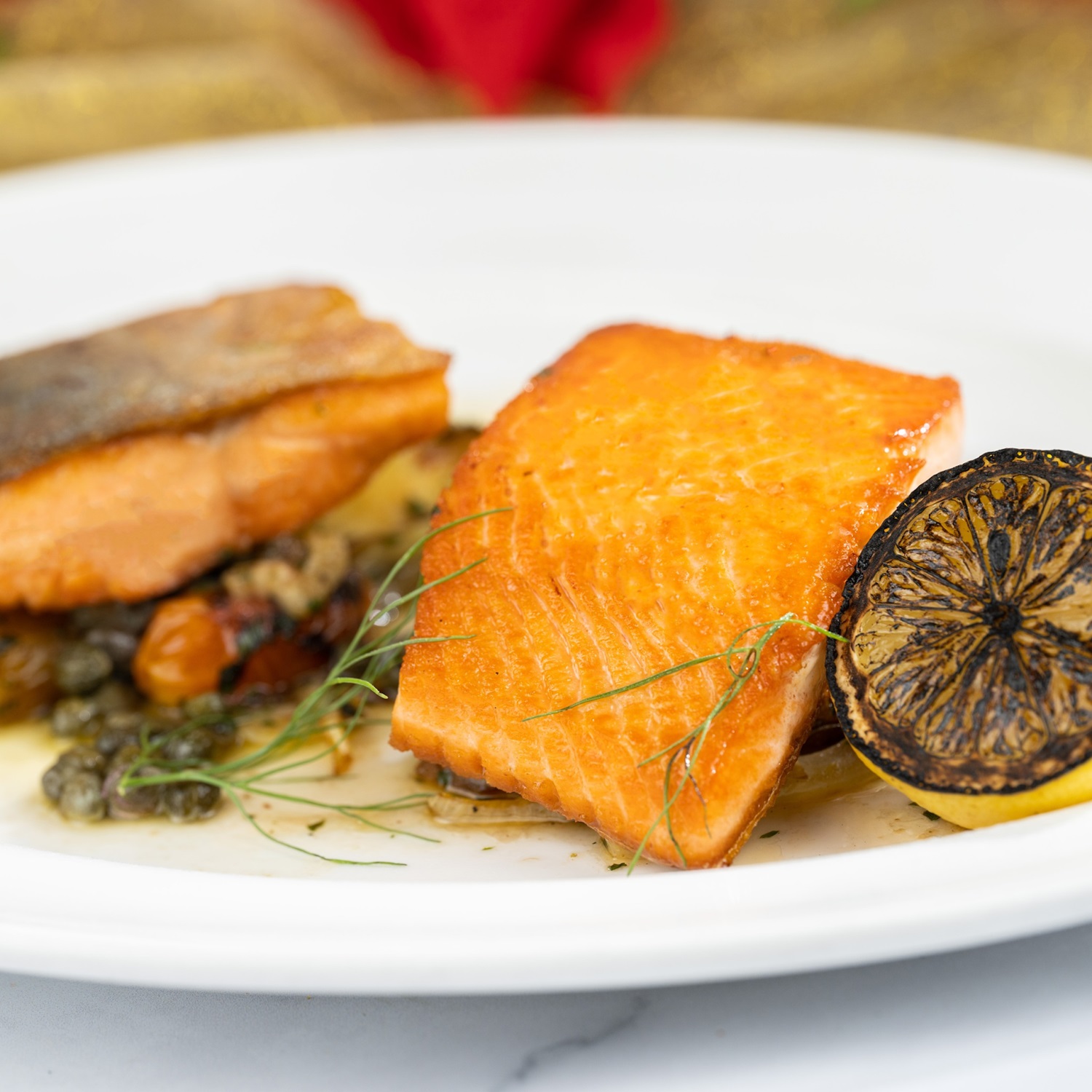 Roasted potatoes, charred tomatoes, shaved fennel, and citrus-caper brown butter