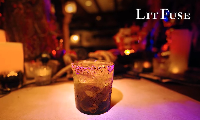 This beverage comes in a souvenir glass and includes Kraken Black Spiced Rum, blackberry, vanilla, and a hint of citrus.