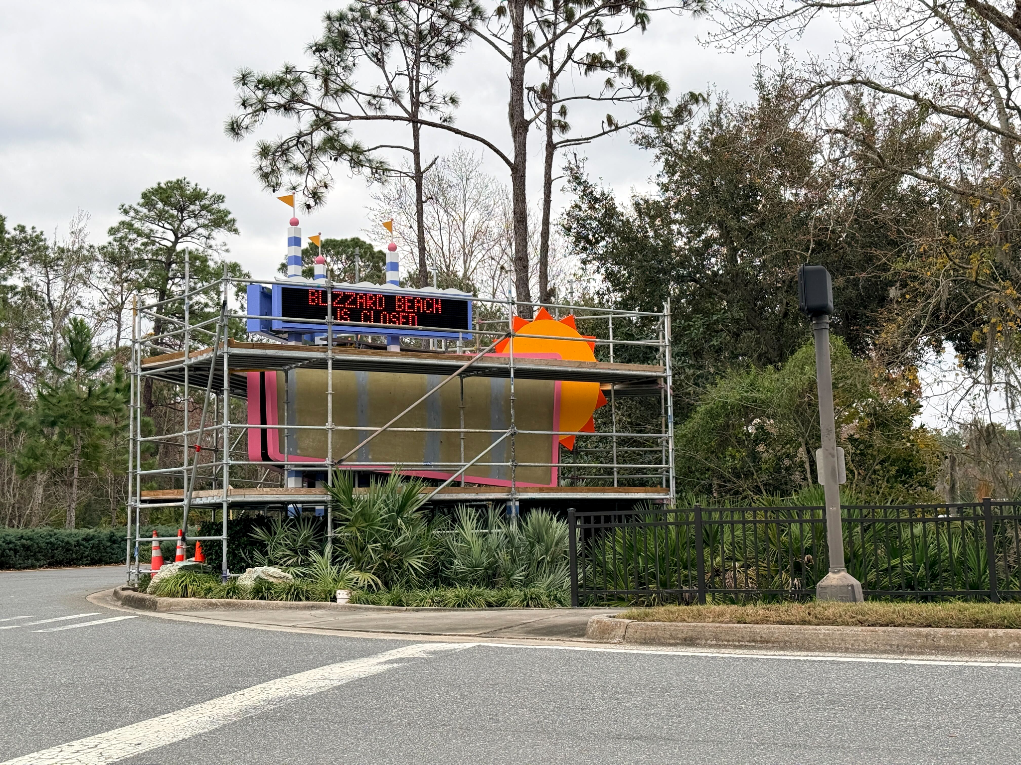 During its extended winter refurbishment, Blizzard Beach Water Park at Walt Disney World’s main marquee sign into the parking lot is getting an upgrade.