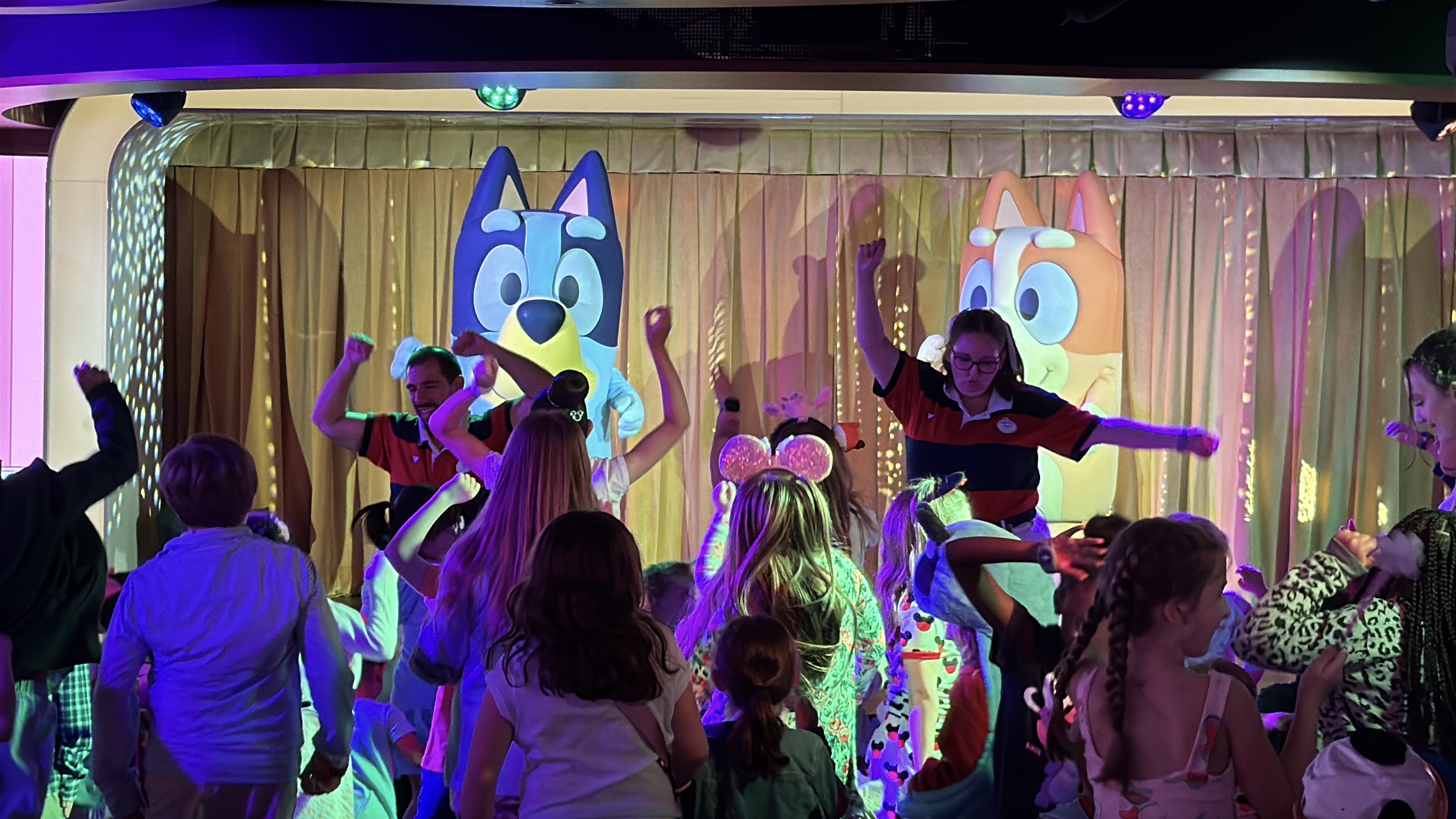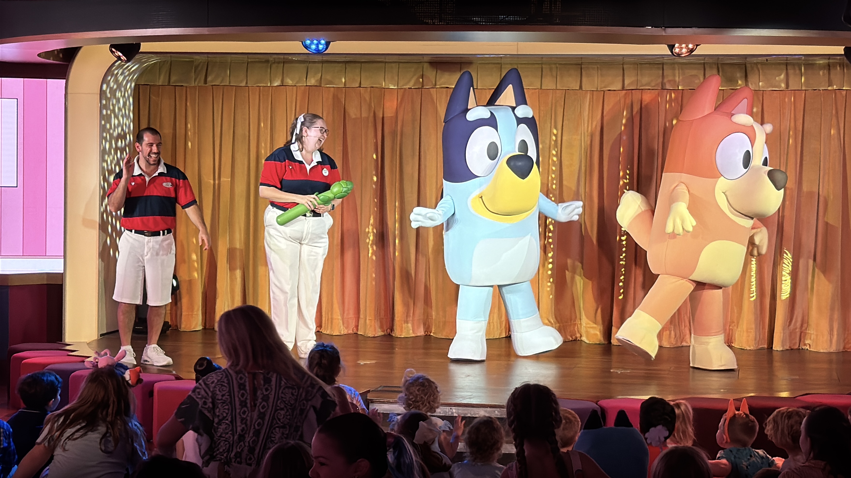 - During our sailing, we caught Bluey and Bingo appearing in the D Lounge venue for meet and greets.
