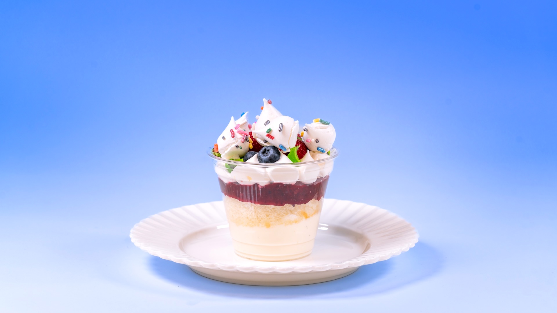 - Pavlova Parfait: Meringue bites, vanilla yogurt mousse, berry compote, vanilla cake, fresh berries, and candied kiwi (New)