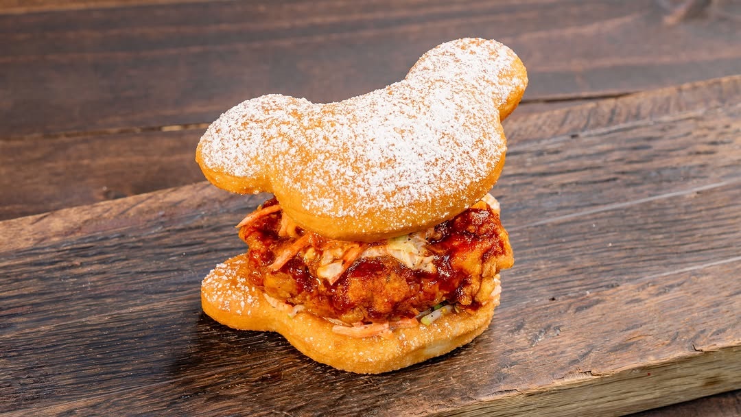 Disneyland is offering a new way to enjoy their signature Mickey-shaped beignets - as the bun surrounding a new buffalo chicken slider.