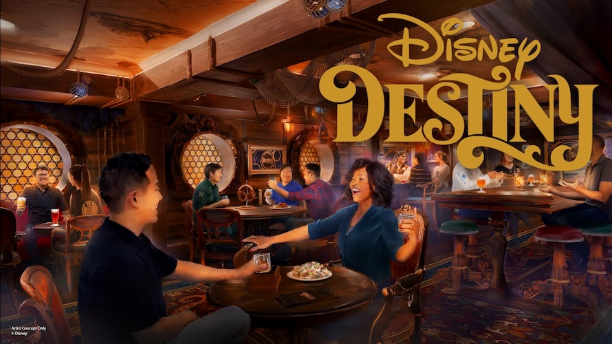 We may have just seen a Pirates of the Caribbean-themed lounge open at the Magic Kingdom, but there is already another new one coming to Disney Cruise Line’s latest ship, the Disney Destiny.